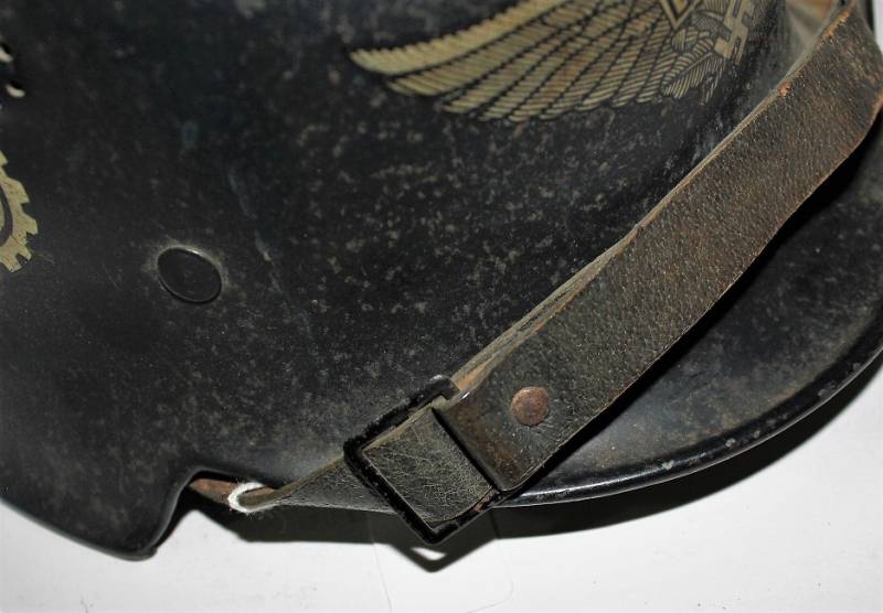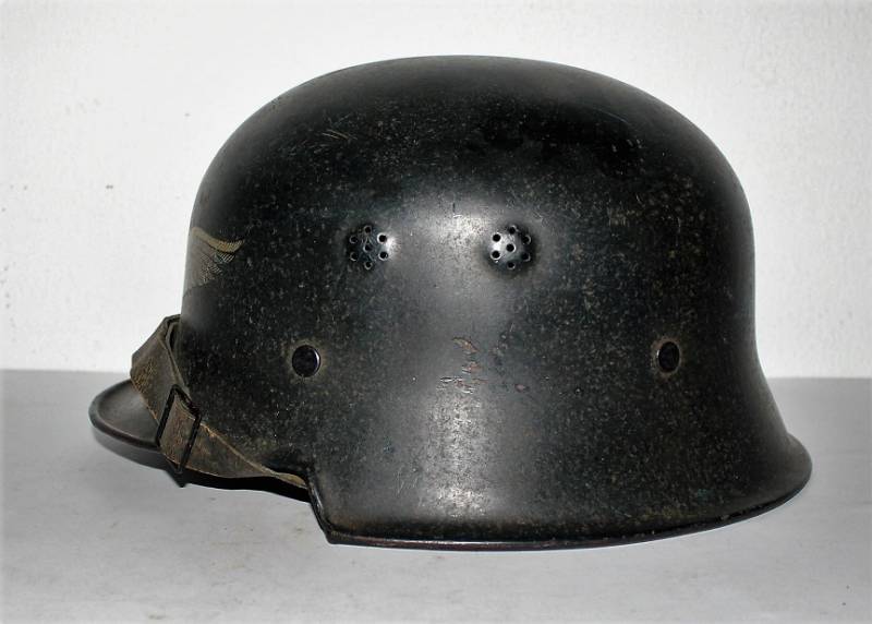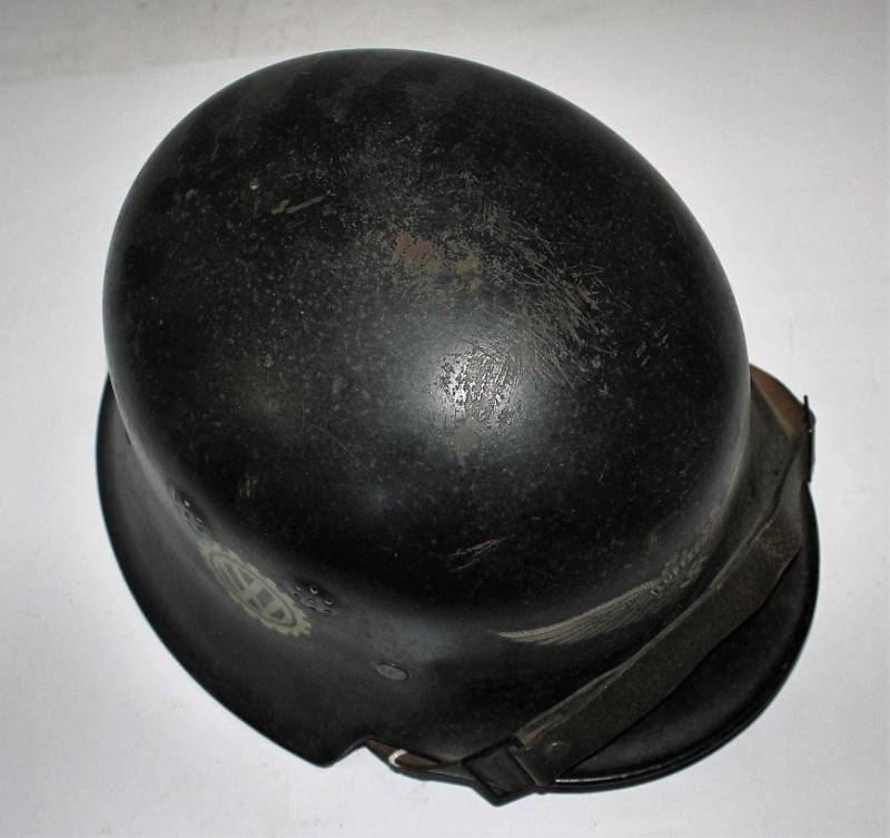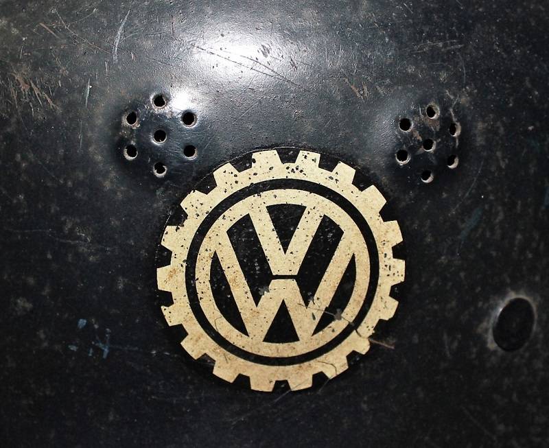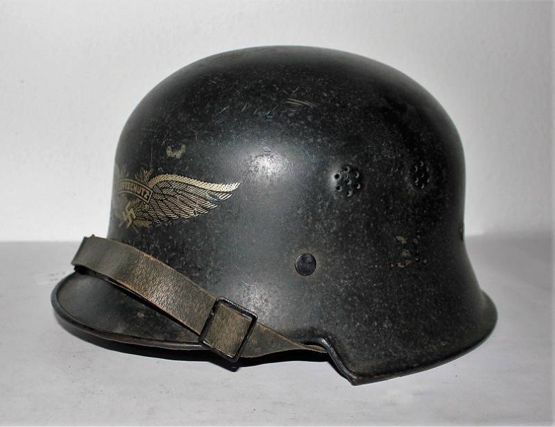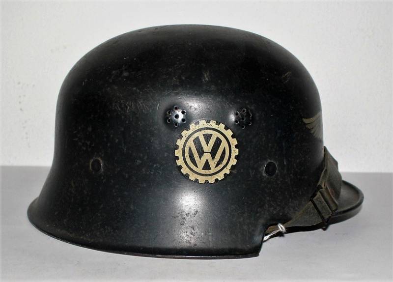 Elmetto mod.34 della protezione civile in uso presso la fabbrica di autoveicoli Volkswagen, in ottime condizioni, completo in ogni sua parte con leggeri segni di usura e del tempo, in colorazione blu scuro al 90%, con fregio frontale Luftschutz e logo Volkswagen, entrambe decalcomanie quasi al 100%. Interno e sottogola mai smontati in ottime condizioni. Taglia 55. Originale 100% WWII periodo.