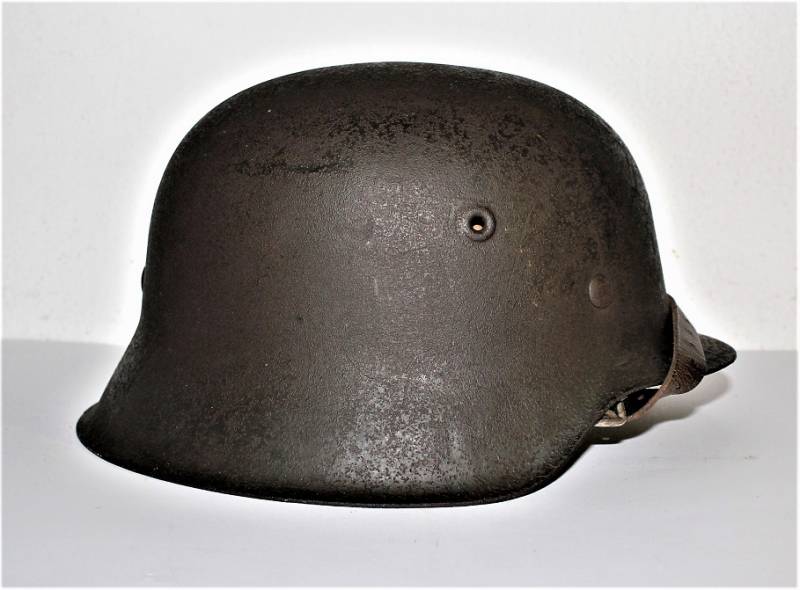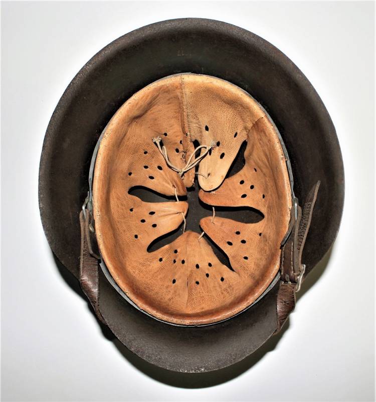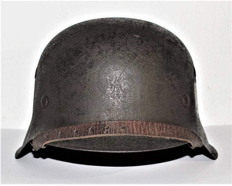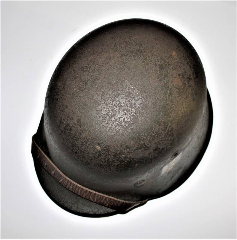 Elmetto mod.42 della WH monodekal, completo in ogni sua parte, vernice rugosa al 70%, dekal stupenda quasi al 100% leggermente ingiallita dal tempo, completo in ogni sua parte, liner e sottogola mai smontati, non restaurato o riparato, pelle del liner e del soggola non lesionate ancora in ottime condizioni, il tutto con patina del tempo e dellŽuso. Ferro marcato con sigla fabbricante, numero di lotto e taglia 64 (taglia pelle 56-57), sottogola marcato con sigla fabbricante e data 1942. Originale 100% WWII periodo.