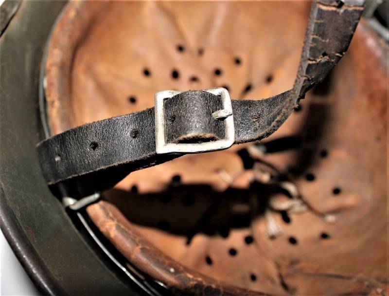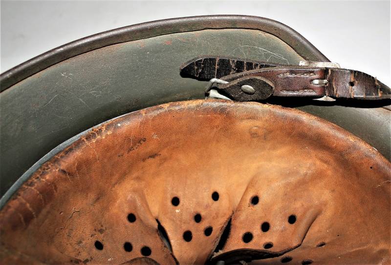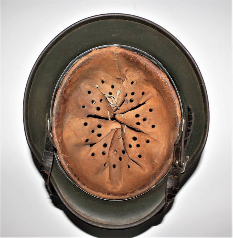 Elmetto M40 monodekal della WH in ottime condizioni, completo in ogni sua parte, non restaurato, riparato e mai smontato, colorazione feldgrau al 90% aquila patinata dal tempo allŽ80%, interno e sottogola mai rimossi e non lesionati, marcato sul ferro con numero di lotto, sigla del fabbricante, taglia ferro 64, taglia pelle 56-57. UnŽaletta di un rivetto del liner è rotta, ma il rivetto è ben solidale con lŽelmo. Originale 100% WWII periodo.