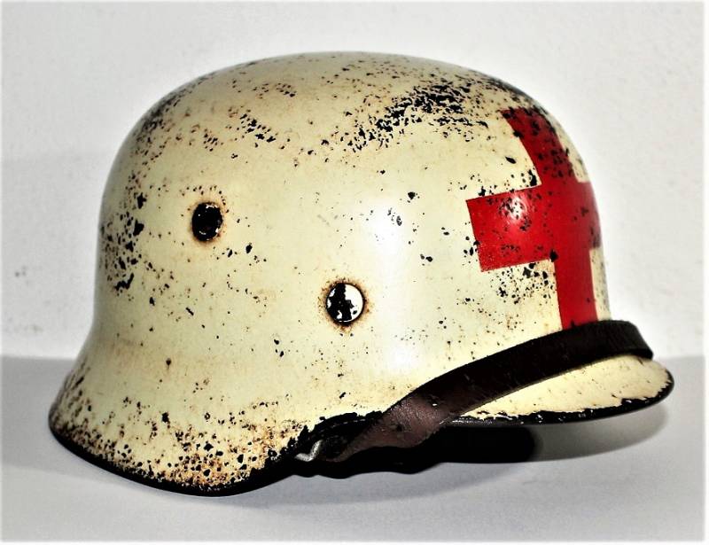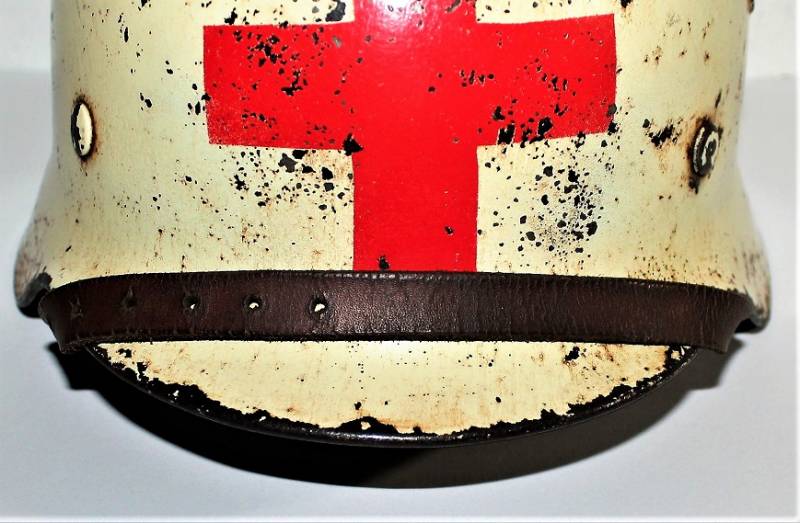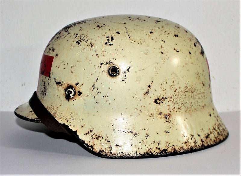 Elmetto M40 Croce Rossa, molto bello e raro, con leggeri segni del tempo e dellŽuso, non restaurato, riparato e mai smontato, completo in tutte le sue parti, verniciatura bianca ingiallita dal tempo al 90% circa, ferro marcato con numero di lotto e taglia ET66, pelle dellŽinterno ottima, non lesionata, taglia 58. Sottogola marcato RBN n... Originale 100% WWII periodo.