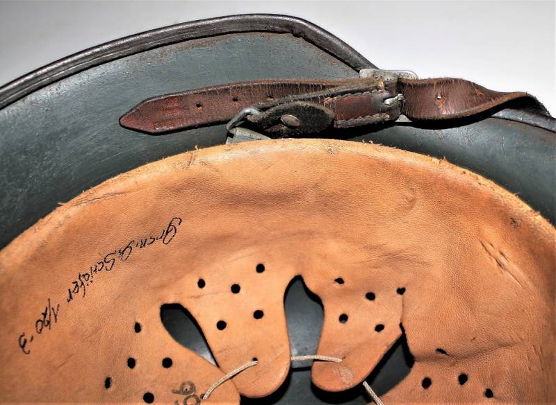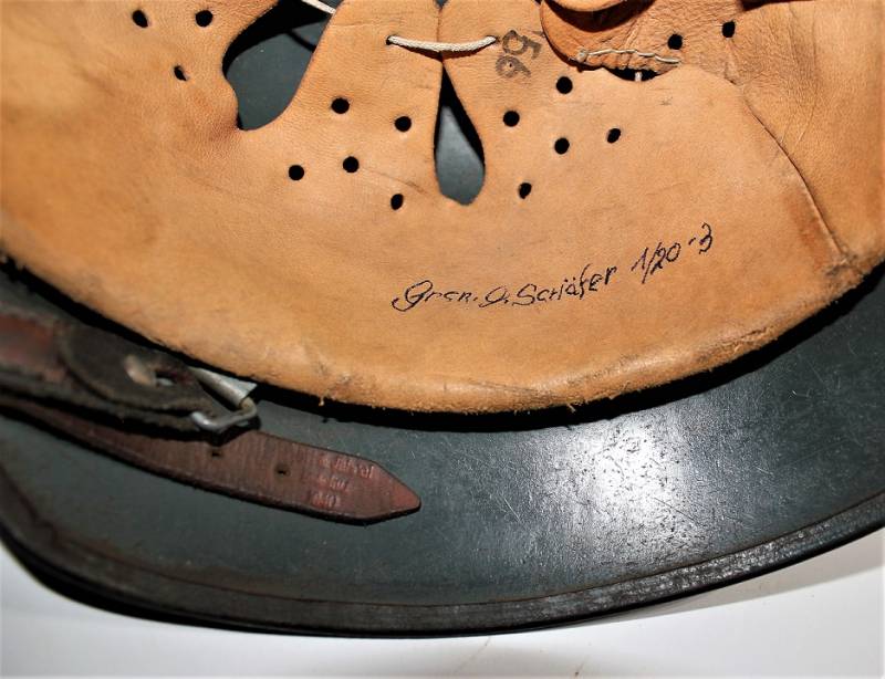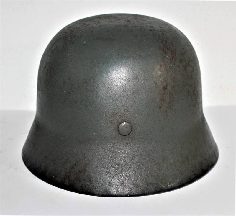 Elmetto M40 monodekal WH in ottime condizioni, non restaurato o riparato, completo in ogni sua parte, con interno e sottogola mai smontati, il tutto con leggera patina del tempo e dellŽuso, verniciatura verde feldgrau rugosa al 90%, decalcomania patinata anchŽessa allŽ90%, pelle del liner in ottime condizioni ancora morbida e non lesionata, con scritto a firma il nome del soldato, marcato sul ferro con numero di lotto e sigla del fabbricante SE 64, sottogola marcato con nome del fabbricante e data 1940. Sulla calotta interna dellŽelmo si intravede il timbro ovale del fabbricante. Originale 100% WWII periodo.