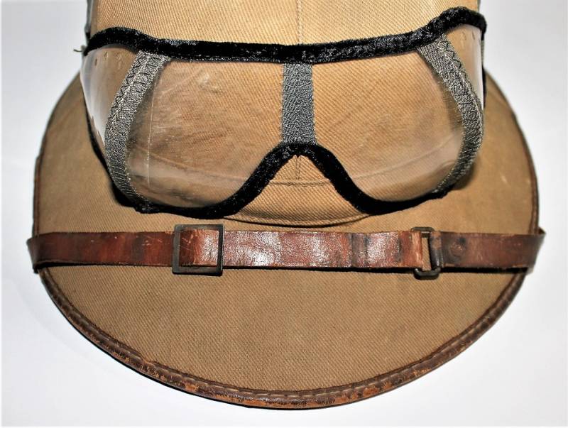 Casco coloniale della WH in buone condizioni, non restaurato o riparato, con leggera patina del tempo e dellŽuso, ma completo in ogni sua parte, interno e sottogola mai smontati, marcato sotto il para sudore con fabbricante, data 1942 e taglia 53, fregi molto belli mai smontati, il tutto corredato da occhiali in celluloide per protezione dalla sabbia. Originale 100% WWII periodo.