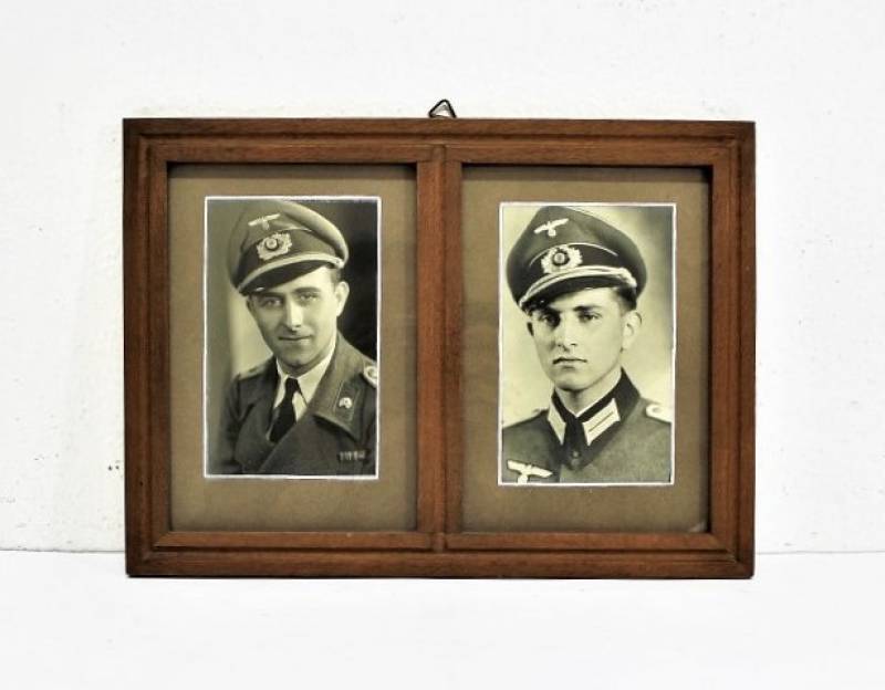 Foto di due fratelli Ufficiali della WH incorniciati in unŽunica cornice in legno, il tutto in condizioni perfette quasi pari al nuovo. Misure circa cm 29x21. Originale 100% WWII periodo.