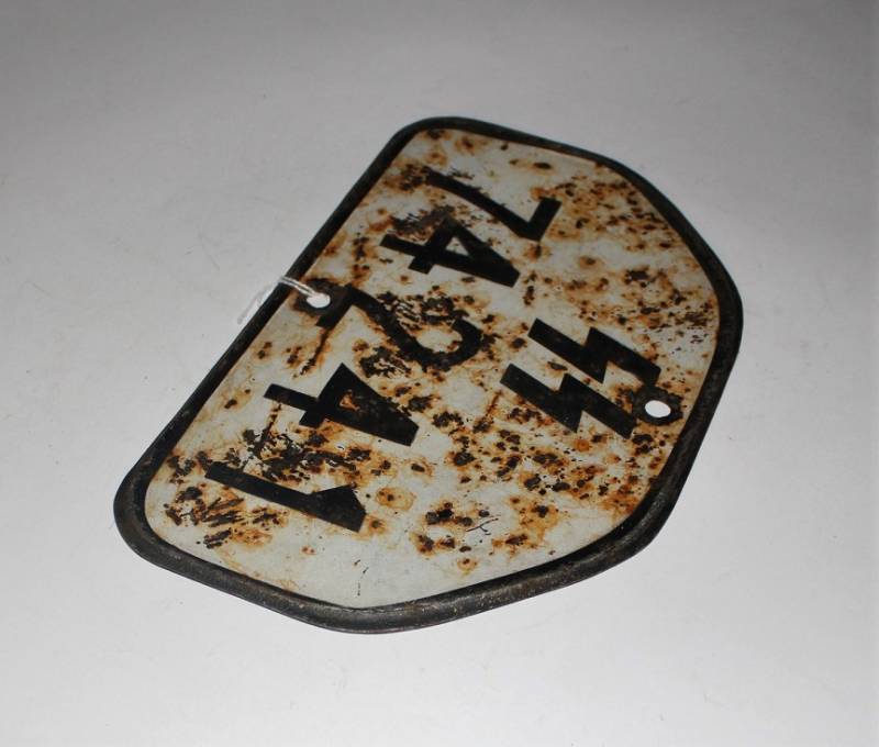 Targa posteriore in lamiera per motocicletta W.SS in buone condizioni, ma con evidenti segni del tempo e dellŽuso, numerazione ben leggibile. Originale 100% WWII periodo.