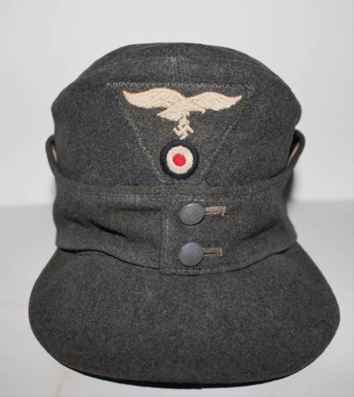 Berretto M43 luftwaffe da truppa in buone condizioni, completo in ogni sua parte, fregio regolamentare M44 cucito a macchina, leggeri segni dŽuso e del tempo, senza buchi o strappi, realizzato in panno di lana blu, interno marcato con RBN..., Taglia 57,5. Originale 100%. WWII periodo.