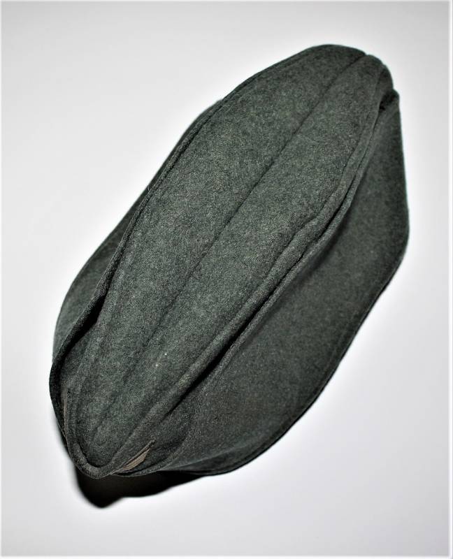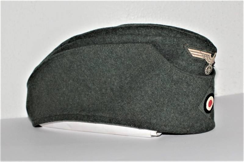 Bustina mod.40 della WH in ottime condizioni con leggerissimi segni del tempo e dellŽuso, non restaurata o riparata, senza buchi o strappi, fregi montati in epoca mai rimossi. Non marcata. Taglia circa a 57-58. Probabile costruzione fine guerra. Originale 100% WWII periodo.