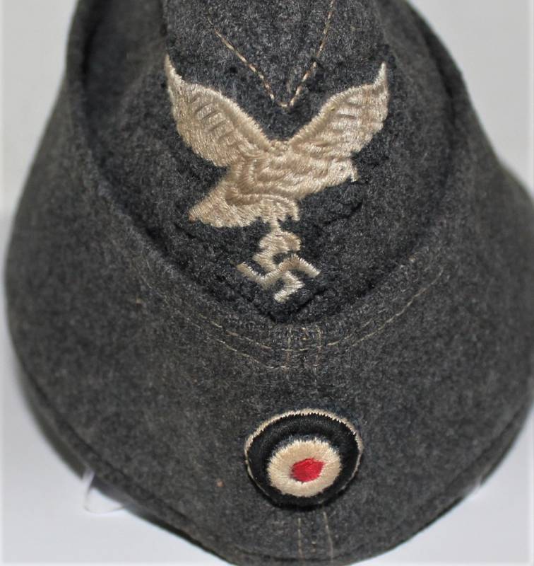 Bustina da truppa della Luftwaffe M40 in panno di lana blu, completa di fregi montati in epoca, in condizioni ottime quasi pari al nuovo, senza buchi o strappi, cuciture perfette, marcata internamente con codice RBN N... data e nome del soldato. Taglia 56. Originale 100% WWII periodo.