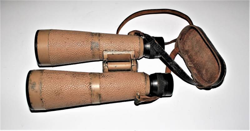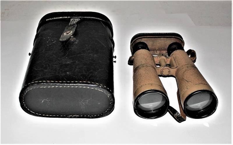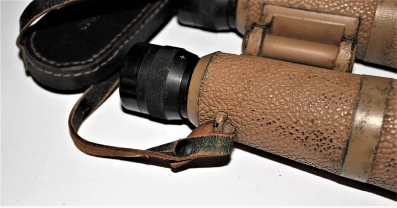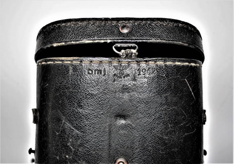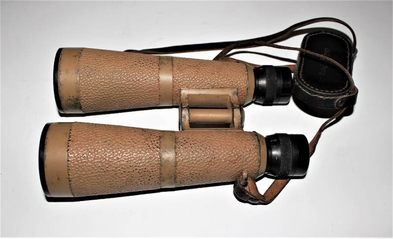 Binocolo 10x50 in colorazione gialla tropicale al 90%, (di solito in uso all´equipaggi Panzer), completo della sua custodia in pelle, il tutto in ottime condizioni con leggeri segni del tempo e dell´uso, non restaurato o riparato, lenti mai smontate, immagine molto chiara, senza reticolo, scatola marcata con codice fabbricante, waffenamt e data 1942, stessa marcatura sul copri lenti in pelle, anche l´ottica è marcata con fabbricante e numero di lotto. Originale 100% WWII periodo.