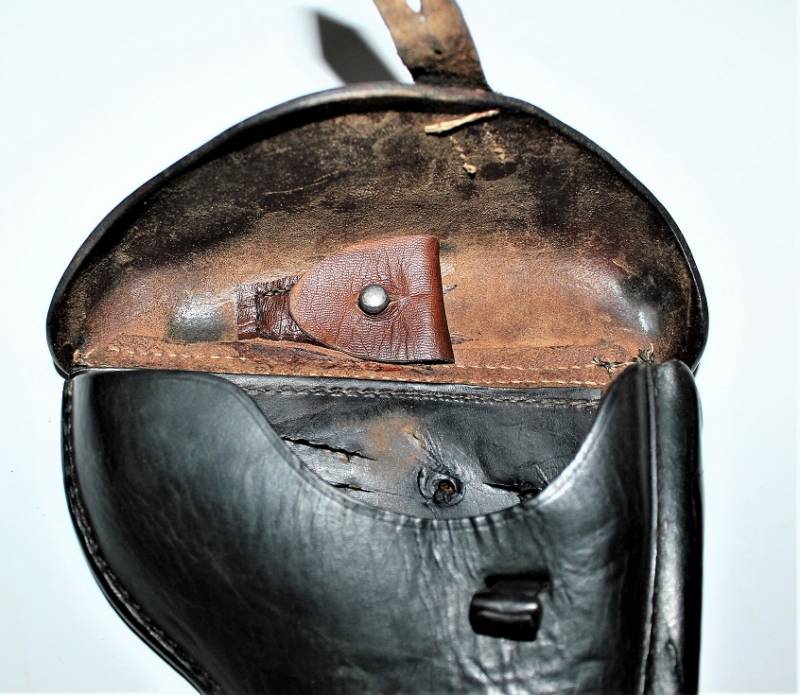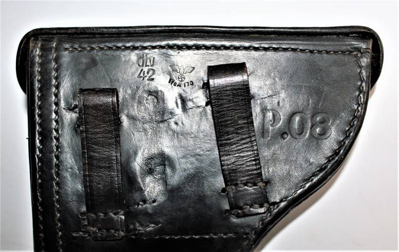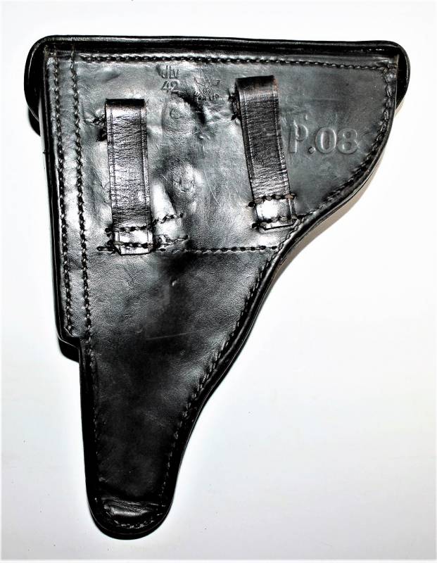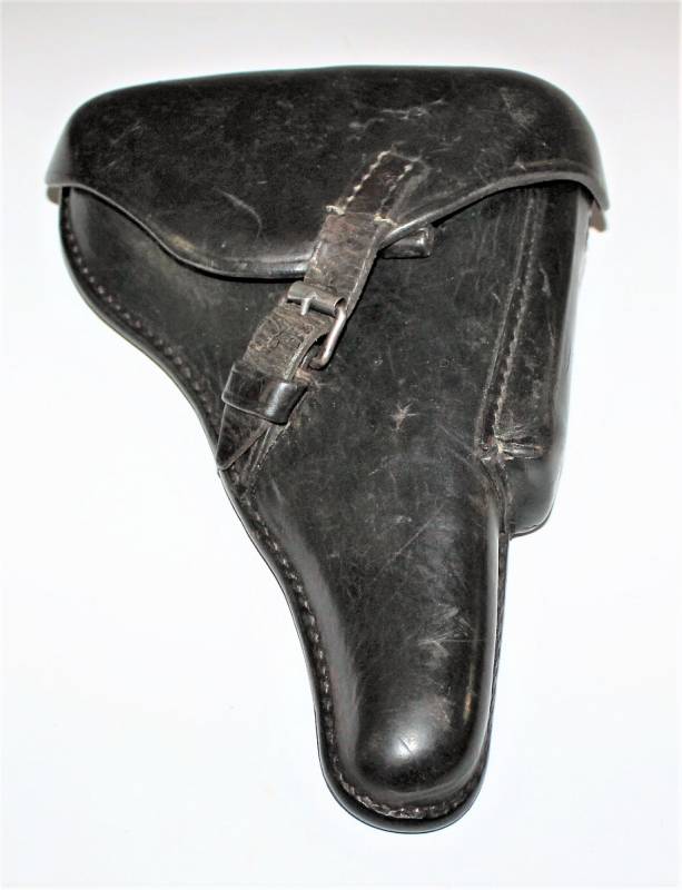 Fondina per Luger P08 in belle condizioni, con patina del tempo e dellŽuso, pelle ottima e cuciture perfette, restaurati i passanti posteriori e sostituiti, marcata con codice fabbricante, data 1942 e waffenamnt. Originale 100% WWII periodo.