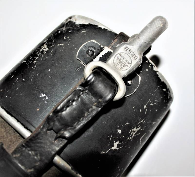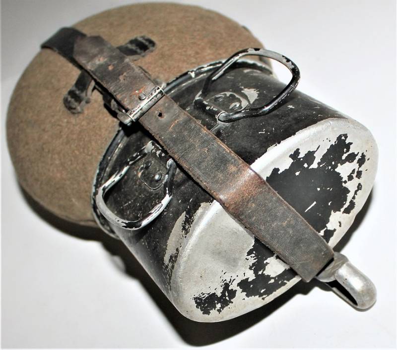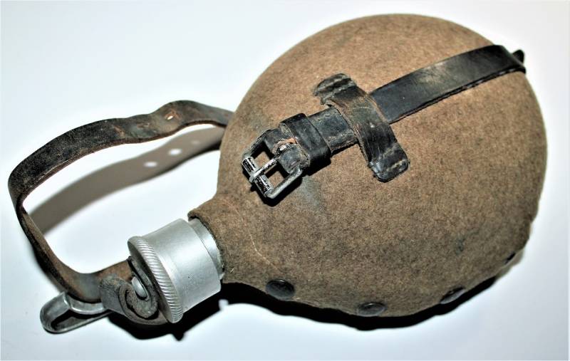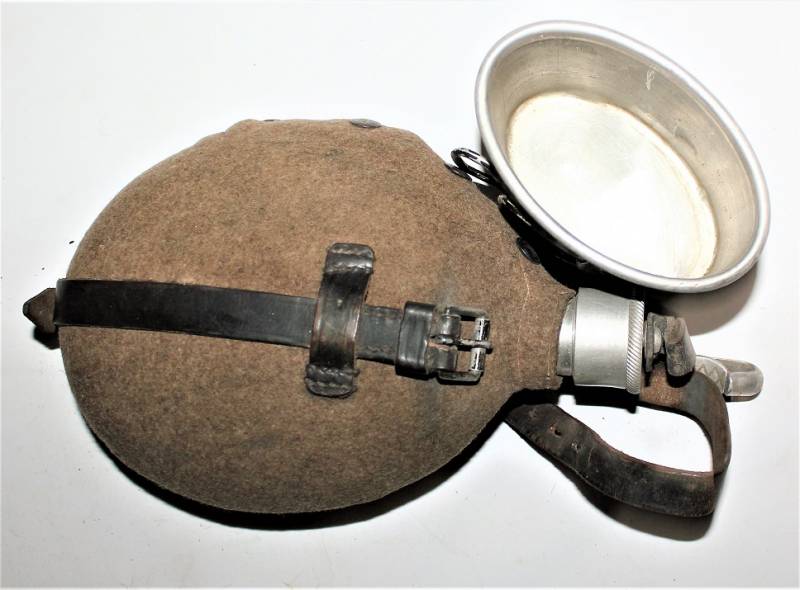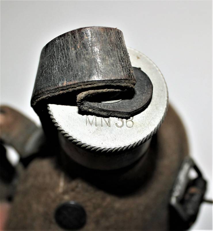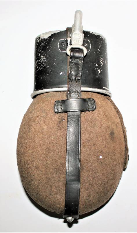 Borraccia WH-LW-SS in buone condizioni, con patina del tempo e dellŽuso, completa con cinghiaggio in pelle, marcata con fabbricante e data. Originale 100% WWII periodo.