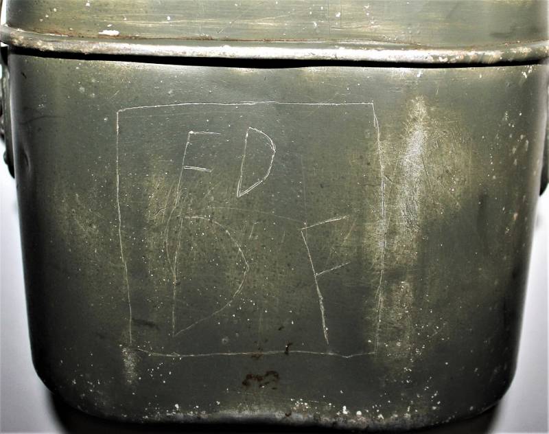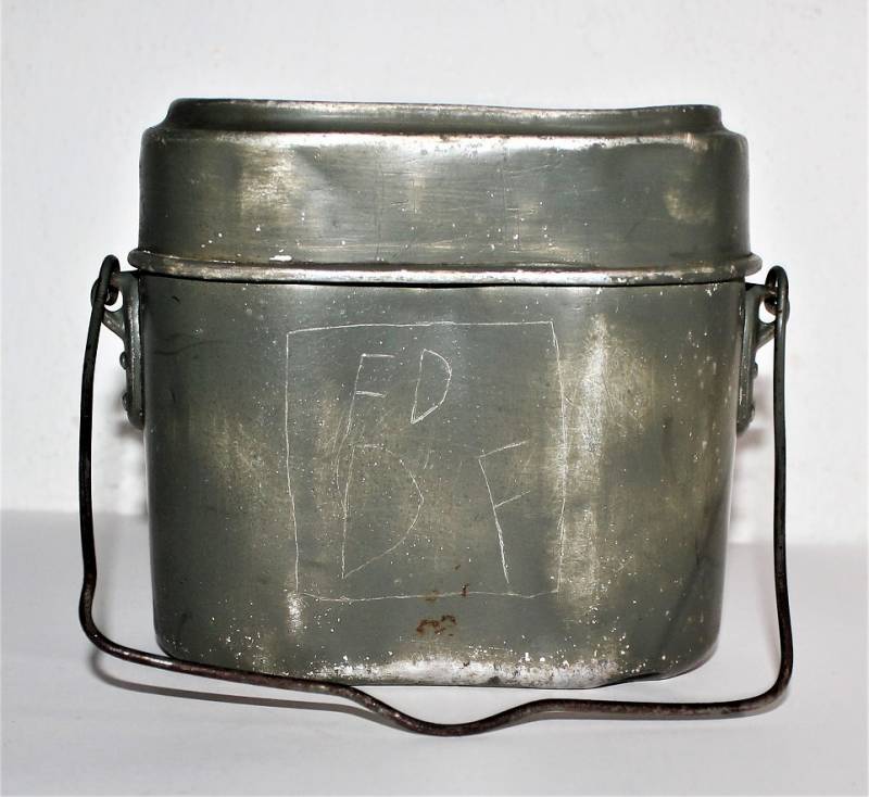 Gavetta in alluminio M31 in colorazione verde chiaro 1°tipo al 90%, condizioni belle, completa in ogni sua parte, non restaurata solo con patina del tempo e dellŽuso, marcata con sigla fabbricante HRE 41.
