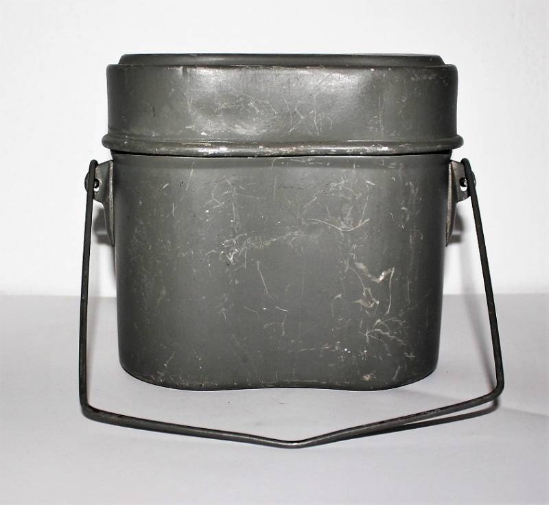 Stupenda gavetta prebellica con marchi dŽaccettazione RZM SS, condizioni perfette, quasi pari al nuovo, in colorazione grigio-verde chiaro al 99% di 1°tipo, completa anche di gavettino. Originale 100% WWII periodo.