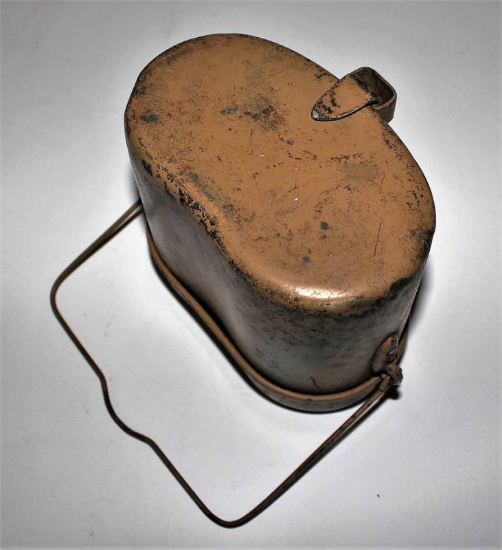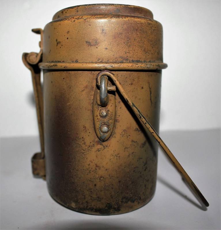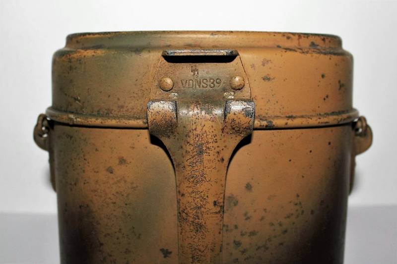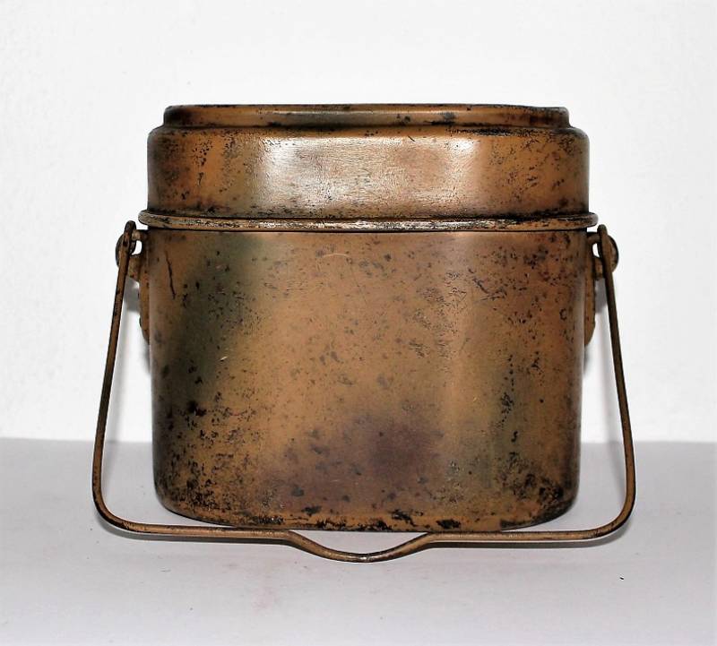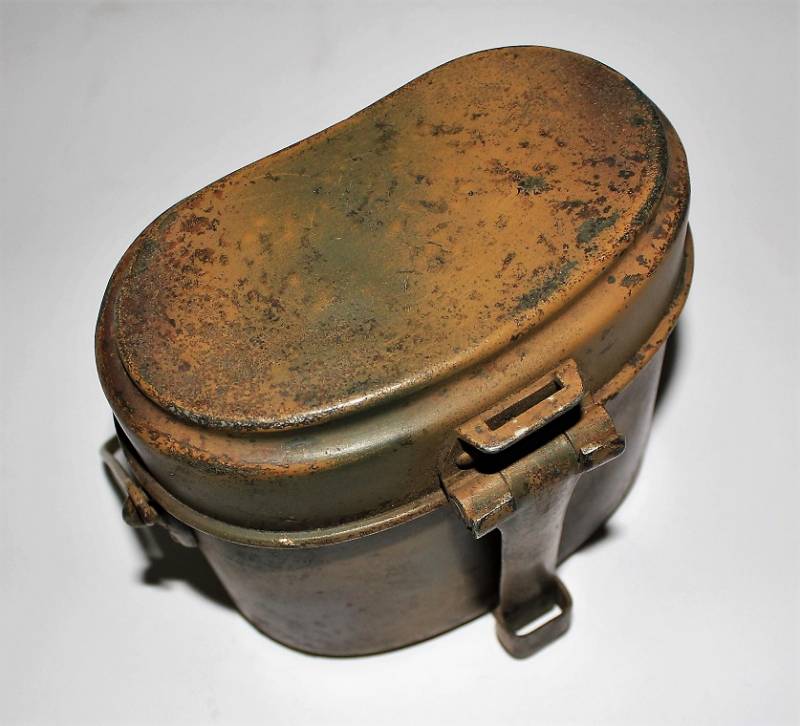 Rara gavetta mimetica 3 colori tipici fronte del Nord, Normandia, condizioni ottime, molto bella con patina del tempo e dellŽuso, non restaurata o riparata, completa in ogni sua parte, colorazione al 90%, marcata con codice fabbricante, data 1939 e rune SS. Originale 100% WWII periodo.
