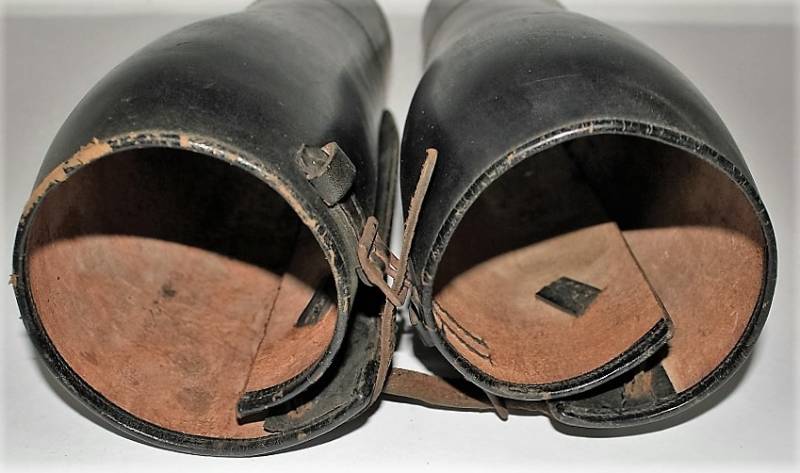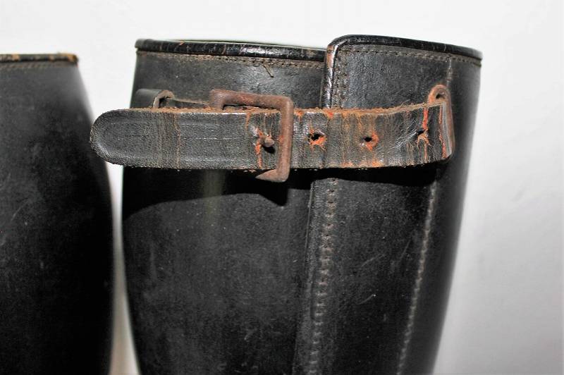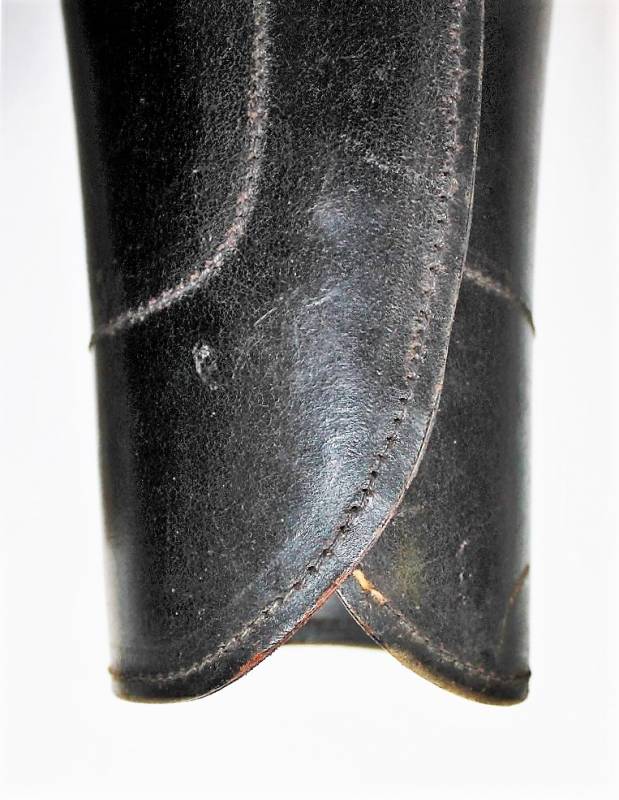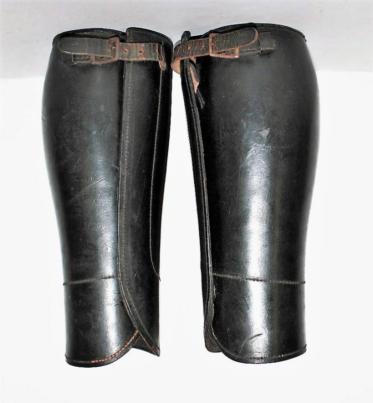 Ghette a gambale in cuoio per reparti Cavalleria o Polizia WH-SS-LW, condizioni ottime, pelle non lesionata completi in ogni sua parte, non restaurati o riparati. Su entrambi i gambali sono visibili i marchi del fabbricante. Originali 100% WWII periodo.