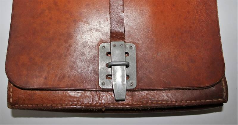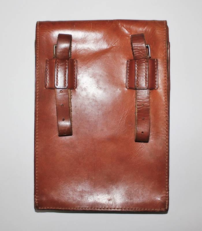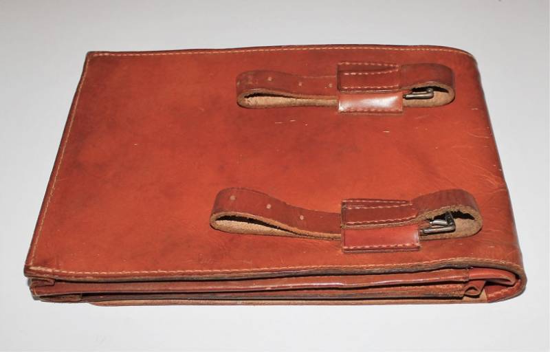Porta documenti da Ufficiale WH.SS.LW nato in pelle marrone, in ottime condizioni, pelle e cuciture perfette, leggera patina del tempo e dellŽuso, marcato internamente con timbro del fabbricante e nome del soldato. Originale 100% WWII periodo.