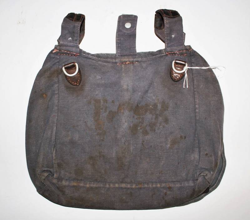 Tascapane della LW in tela color blu, leggera scoloritura causa patina del tempo e delŽuso, completo di cinghiaggio, la pelle degli accessori si presenta secca e screpolata, manca un bottone del cinghiaggio della parte interna. Originale 100% WWII periodo.