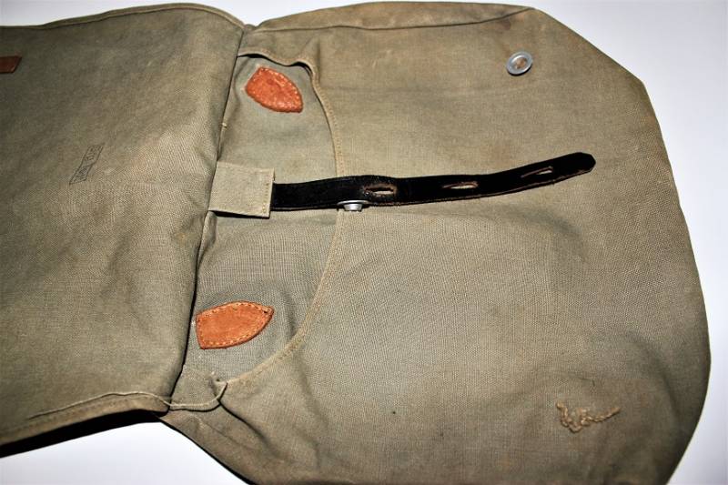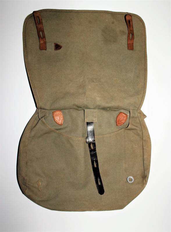 Tascapane "BROTBEUTEL M31" in ottime condizioni in tela grigio-verde, completo, senza buchi o strappi, cuciture perfette, finimenti in pelle ottimi, marcato allŽinterno ORG. TODT. Originale 100% WWII periodo.