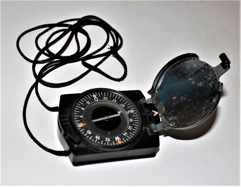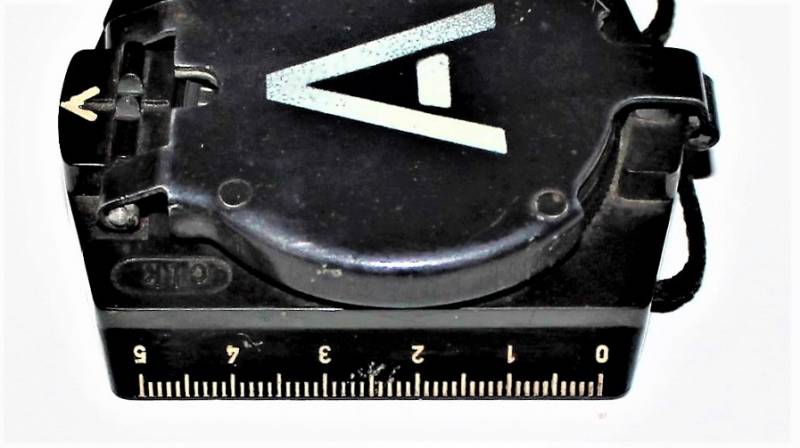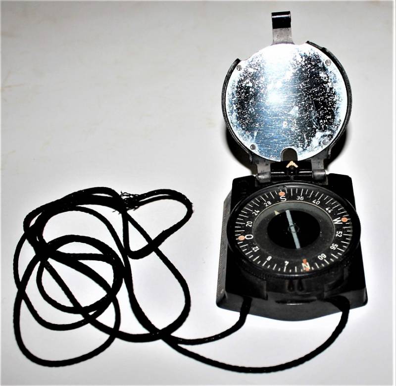 Bussola in bakelite in dotazione WH-SS-LW in ottime condizioni, leggerissimi segni del tempo e dellŽuso, non restaurata o riparata e perfettamente funzionante, con "A" a vernice bianca a mascherina per riferimento dellŽartiglieria. Marcata con codice fabbricante. Originale 100% WWII periodo.