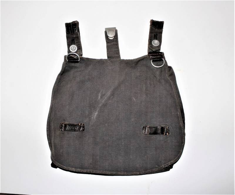 Tascapane mod.31 della LW in tela color blu, leggera patina del tempo e delŽuso, la pelle degli accessori si presenta leggermente secca, ma non lesionata, piccola toppa allŽinterno, marcato con L.B.A. 40. Originale 100% WWII periodo.