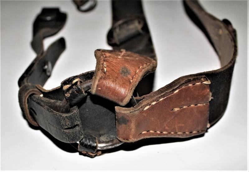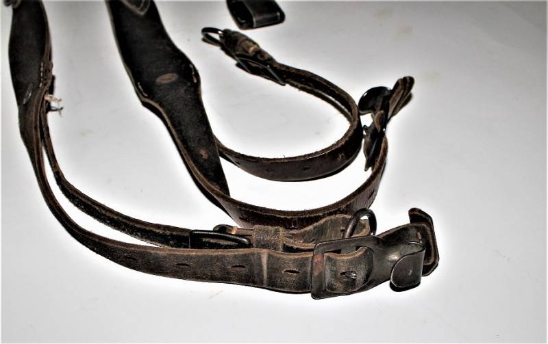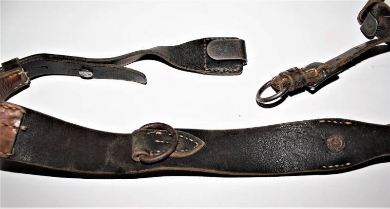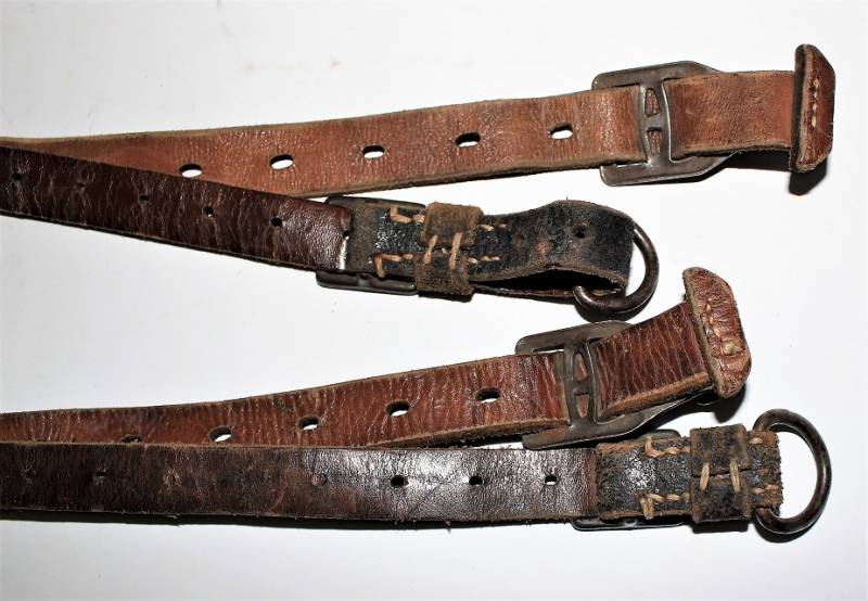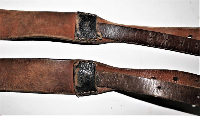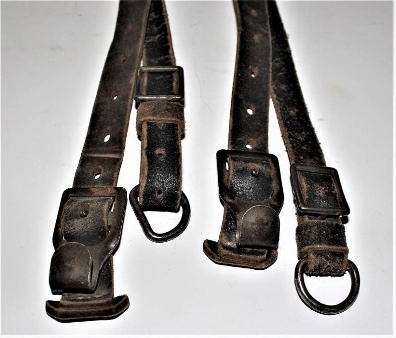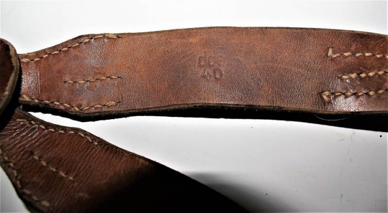 Spallacci a "Y" regolamentari in dotazione a tutti i reparti WH-SS-LW, condizioni usato, ma buona conservazione, pelle sana non lesionata, completi in tutte le sue parti, marcati con codice fabbricante e data 1940. Originale 100% WWII periodo.