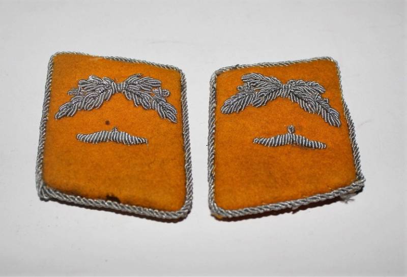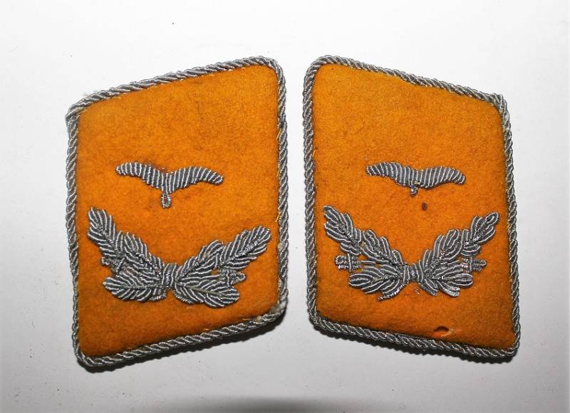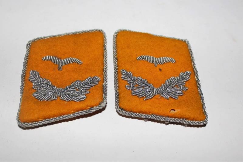 Coppia di mostrine da Ufficiale LW nel grado di Tenente, waffenfarbe giallo per personale truppe paracadutisti o personale di volo, condizioni buone mai montate. Originale 100% WWII periodo.