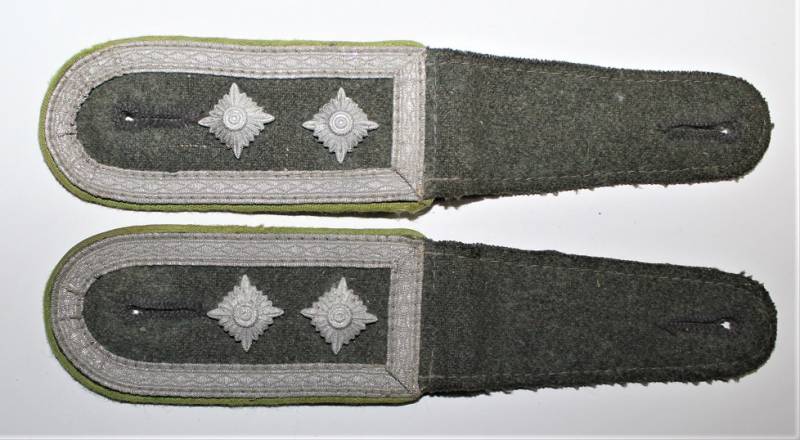 Coppia di spalline M40 da Sottufficiale della WH waffenfarbe verde mela Panzergranadier, condizioni ottime, con leggeri segni dŽusura e del tempo, cuciture perfette. Originale 100% WWII periodo.