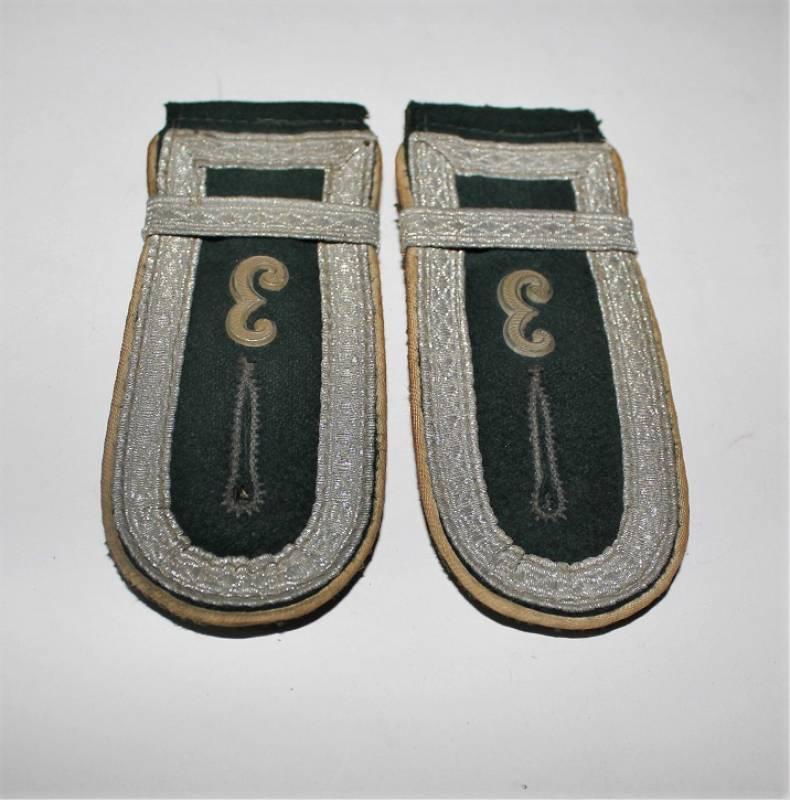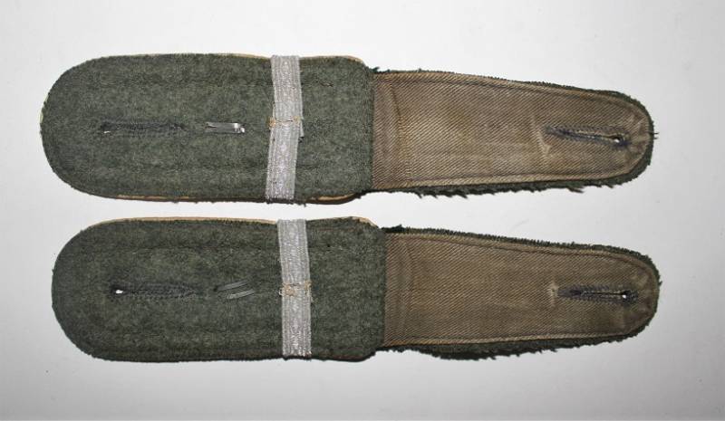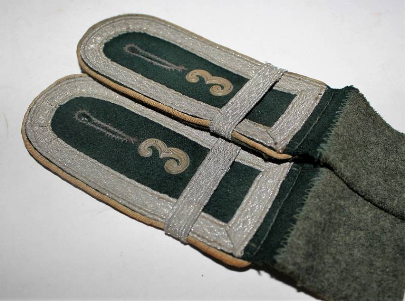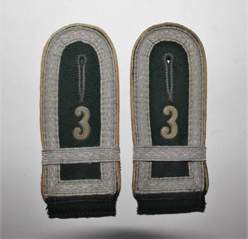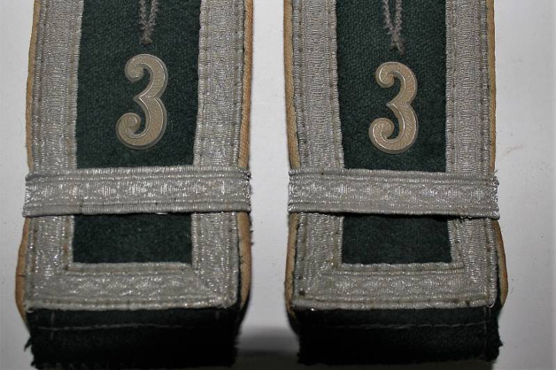 Spalline mod.36 da sottufficiale della WH, waffenfarbe bianco della fanteria (passante in canottiglia per aspirante Ufficiale), condizioni usate ma belle, patinate ma non lesionate, con numero reggimentale in metallo. Originale 100% WWII periodo.