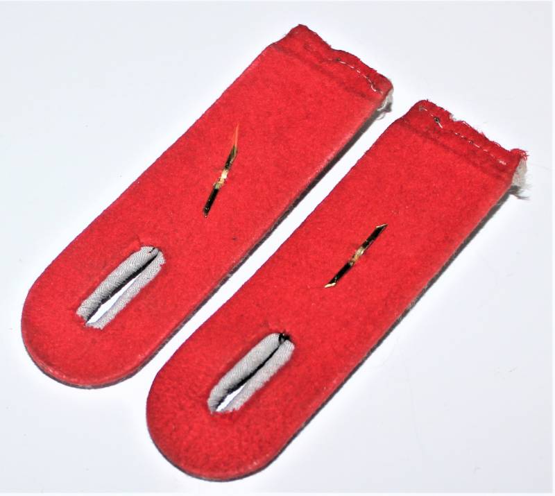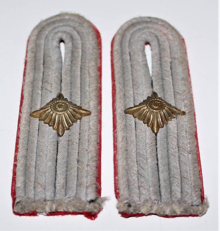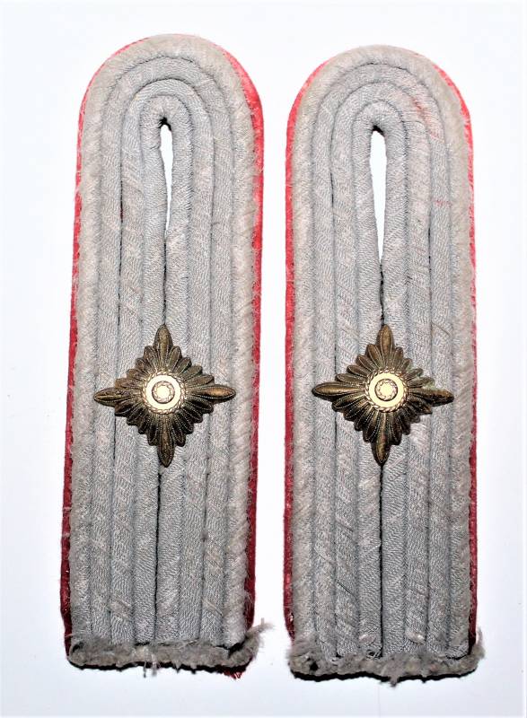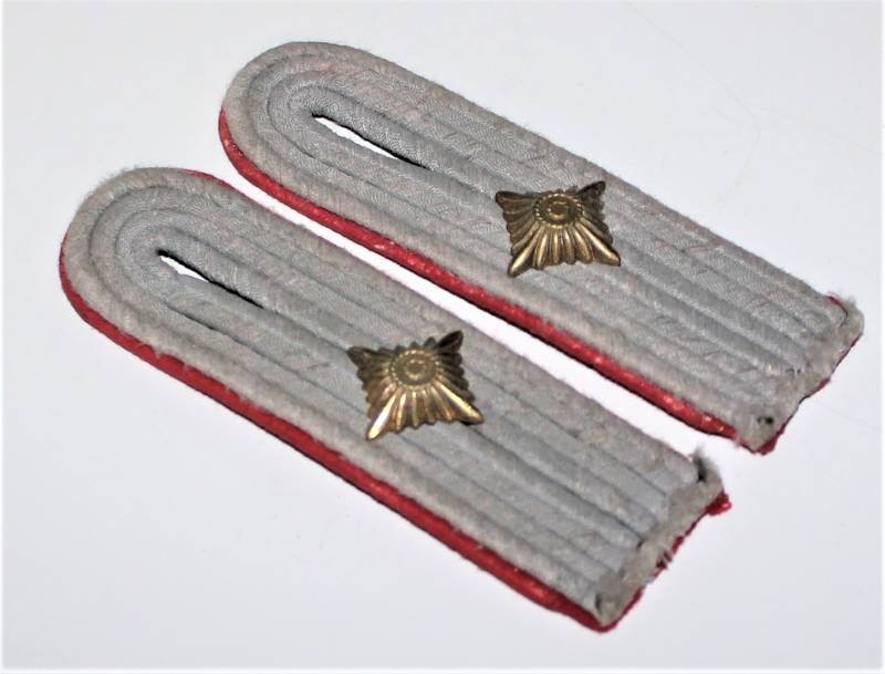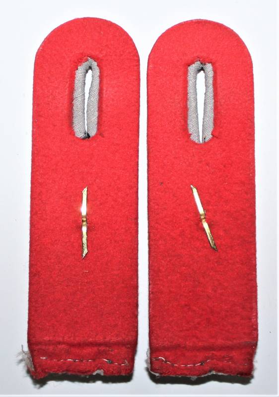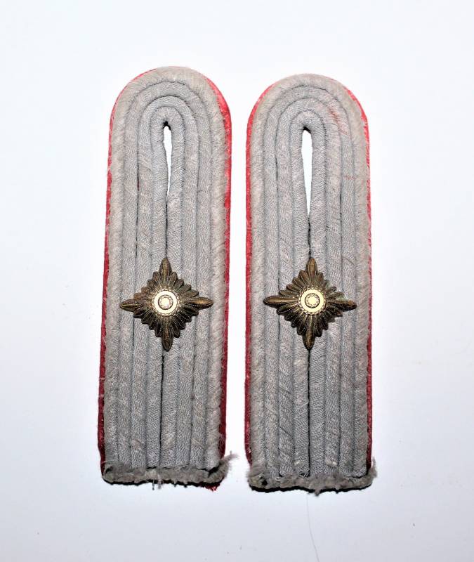 Spalline da Ufficiale WH nel grado di Tenente dellŽartiglieria in buone condizioni con leggera patina del tempo e dellŽuso, waffenfarbe rosso. Originali 100% WWII periodo.