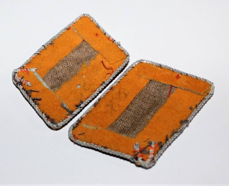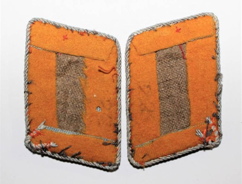 Coppia di mostrine da Ufficiale della LW waffenfarbe giallo Paracadutisti o Piloti, condizioni buone, con leggera ossidazione della canottiglia. Originale 100% WWII periodo.