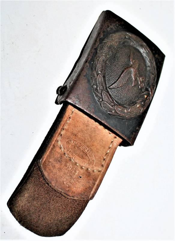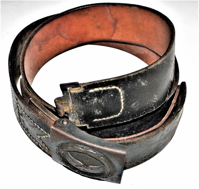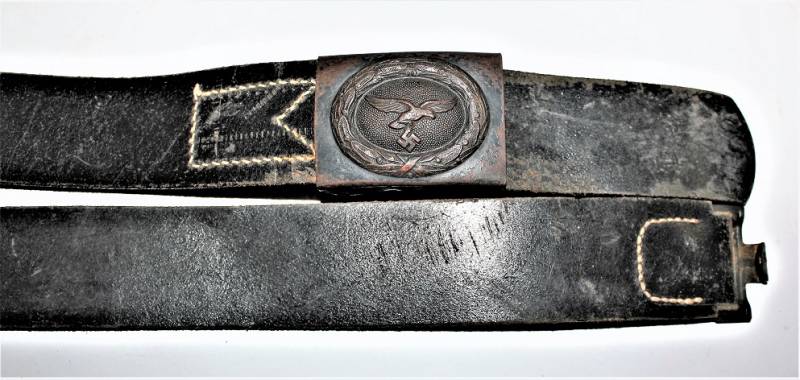 Beautiful belt and buckle NCO Luftwaffe, all in excellent condition, only slight patina of time and use, steel buckle painted in bluegrau, leather belt in excellent condition with perfect stitching, length 110 cm, the buckle is complete with flap in Leather marked with manufacturer´s logo and date 1941, the belt is also marked with the manufacturer´s name and date 1942. Original 100% WWII period.