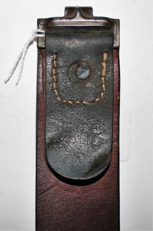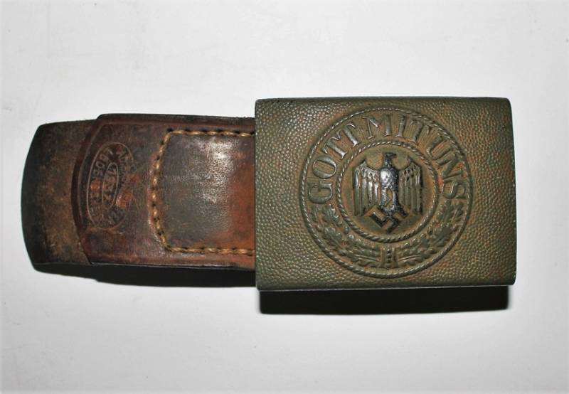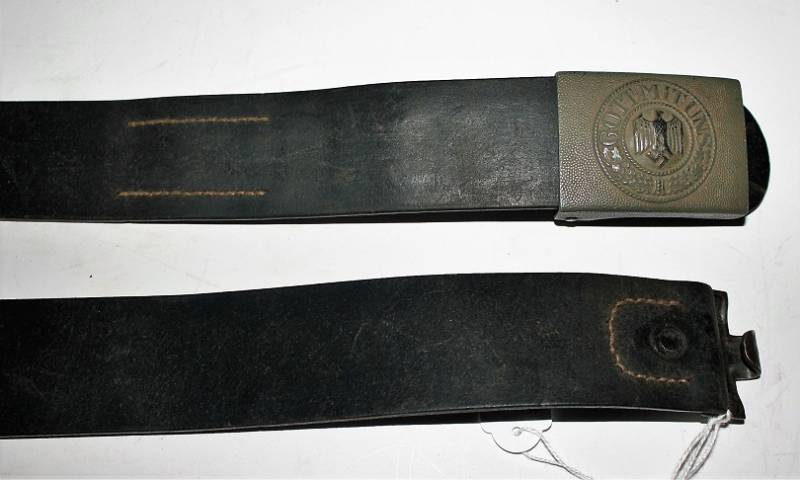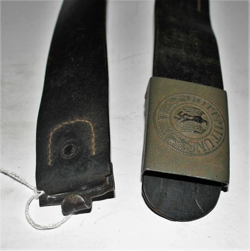 WH NCO belt and buckle in very good condition, light signs of time and use, born in black leather, not damaged, aluminum buckle painted with light green of 1st type, complete with flap marked with manufacturer name and year 1937, buckle marked with manufacturer code. Length 85cm. Original 100% WWII period.