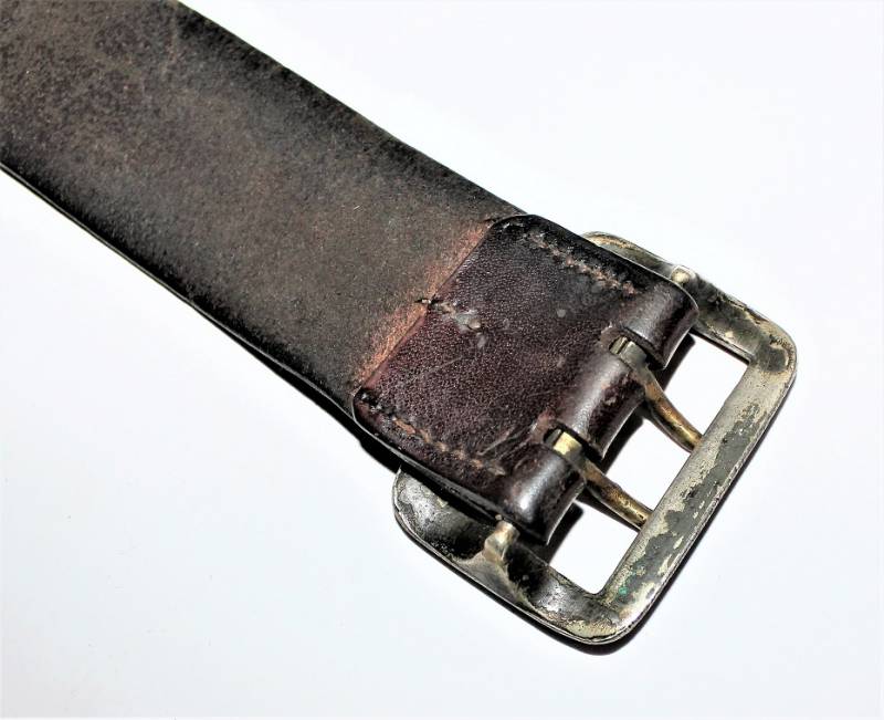 WH-LW-SS Officer´s belt in black leather, height 40 cm, length 90 cm, leather and stitching in good condition only with patina of time and use, on the inside the Officer´s name engraved on the leather.