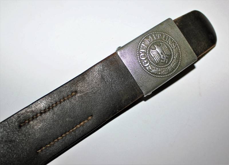 Belt and buckle NCO WH, all in excellent condition, aluminum buckle marked with manufacturer code and date 1940, complete with leather loop also marked with manufacturer name and date 1940, black leather belt in excellent condition, length approx. 100 cm not damaged and with perfect seams, also marked with manufacturer´s name and date 1940. Not restored or repaired.