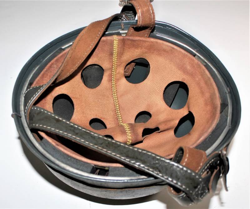 Beautiful reproduction of M38 paratrooper helmet, complete with liner and chinstrap, born in Normandy camouflage color, size approx. 57-58.