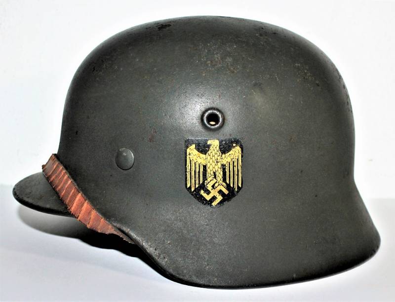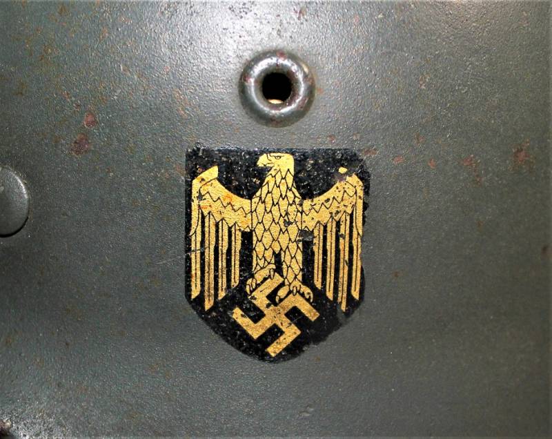 Kriegsmarine M40 helmet singoldekal born in wrinkled dark feldgrau green color with 95%, excellent condition with a slight patina of time and use, not restored or repaired, complete in all its parts, liner and chinstrap never disassembled, leather in excellent Condition not damaged only patinated from use, on the chinstrap you can see the name of the manufacturer and the date 1940, decal in excellent condition, almost 100%.