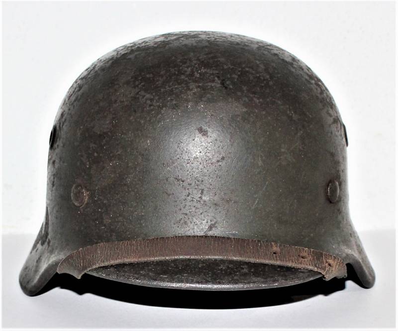 Helmet M40 singoldekal of the WH born in wrinkled feldgrau green color with 60% paint in good condition with patina of time and use, some traces of rust but not restored or repaired, complete in all its parts, liner and chinstrap never disassembled, leather in good condition, not damaged, only patinated by use, with the soldierīs name written, the name of the manufacturer and the date can be seen on the chinstrap, decal in good condition 75-80% patinaed by time, iron marked with manufacturer code Q64 and lot numbers, size of the skin 56-57. 100% original WWII period.