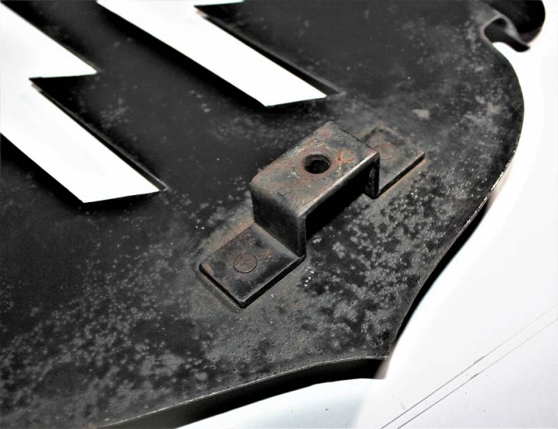 Rare and beautiful wall crest-shield for SS barracks made of hand-forged sheet metal and painted in black, good condition, only patina of time and use and small patches of rust, but the color is about 80%. Measures approximately 42x31. Very rare and original 100% WWII period.
