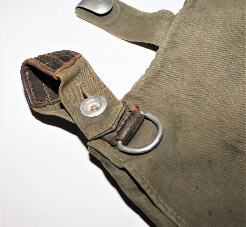 WH "BROTBEUTEL M31" in good condition in gray-green canvas, complete in all its parts, without holes or tears, only with a slight patina of time, internally marked E38.