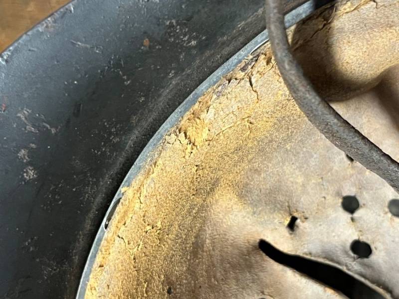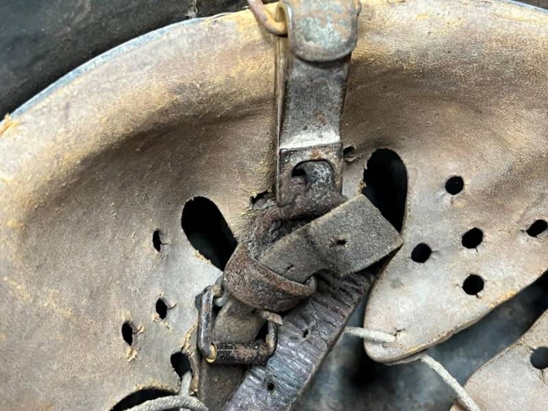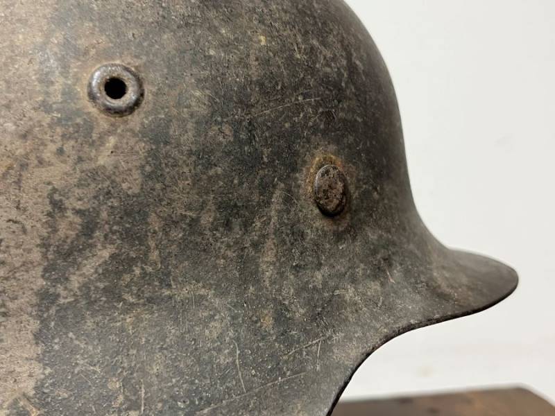 Beautiful German helmet Wehrmacht model 1942, decal heer 80%, not restored, not repaired and never disassembled, complete in every part, beautiful patina, size 66, manufacturer NS (Vereinigte Deutsche Nickelwerke AG, Schwerte). The modification made "on the field" by the soldier who had it equipped was very interesting and consisting of the addition to the chin strap of the quick release system called "carbine clip" (originally "mounted" on the so-called transitional helmets starting from the mid-20s). A real heirloom from the Second World War recovered in the 1980s in the Volterra area (Pisa).