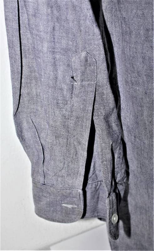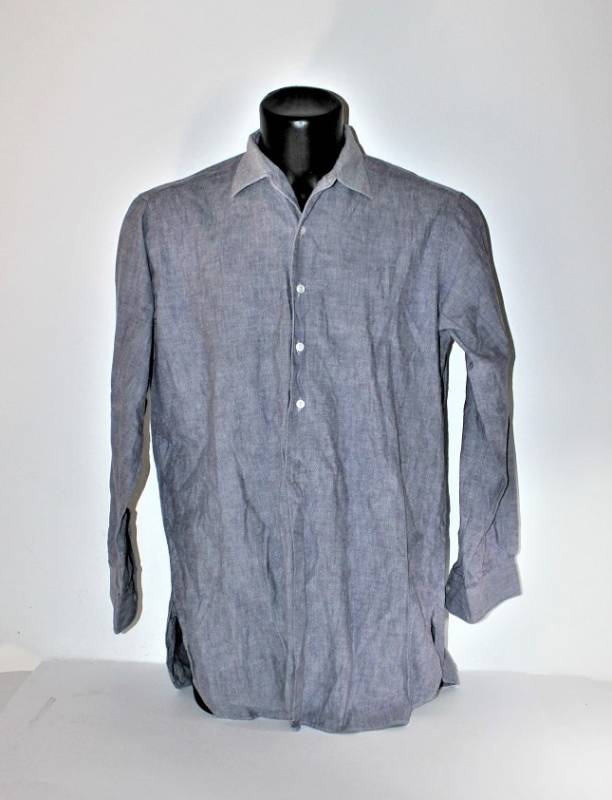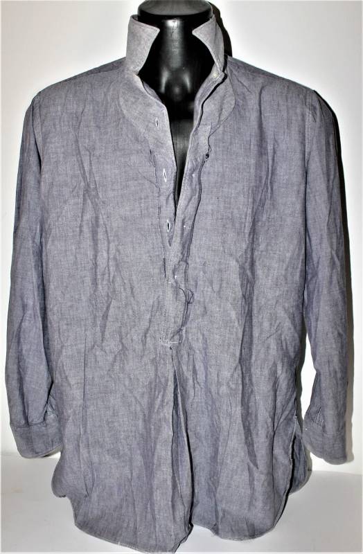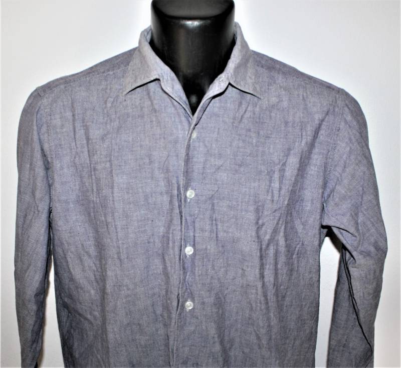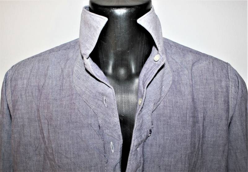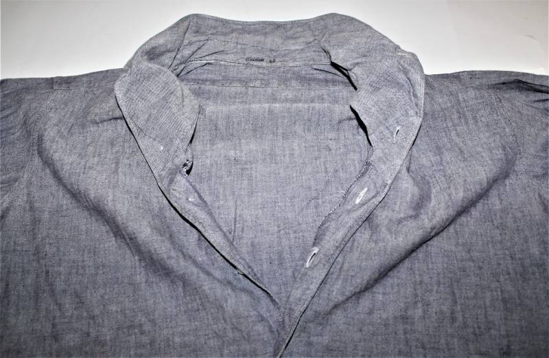 Camicia di servizio della Luftwaffe modello a manica lunga, nata in cotone blu LW, condizioni ottime, quasi pari al nuovo, senza buchi strappi o riparazioni. Marcata con fabbricante e taglia (taglia grande). Originale 100% WWII periodo.