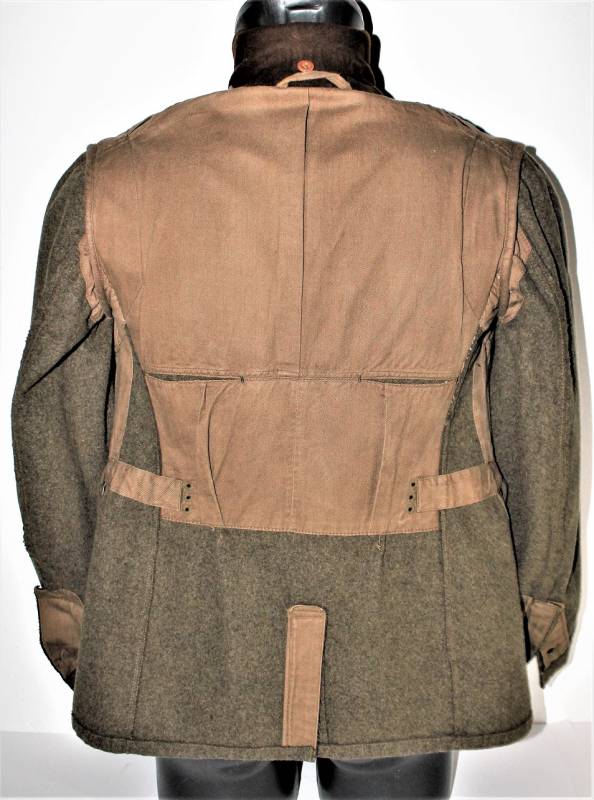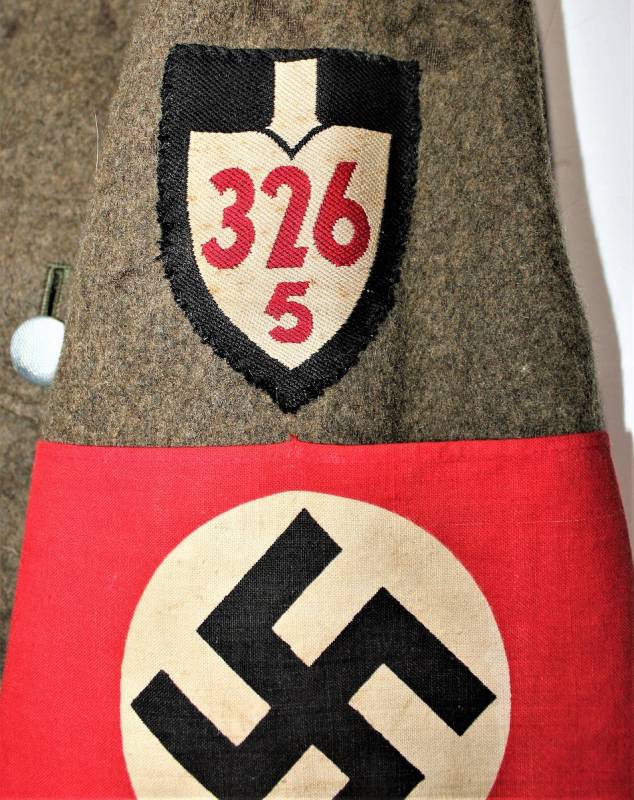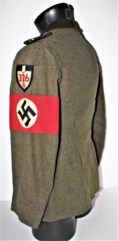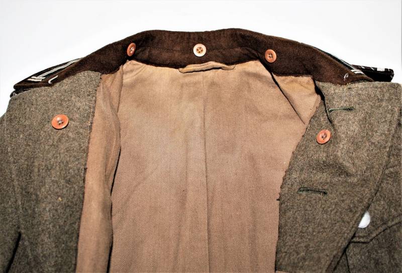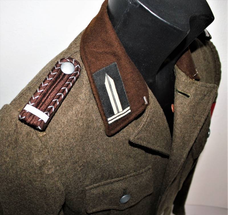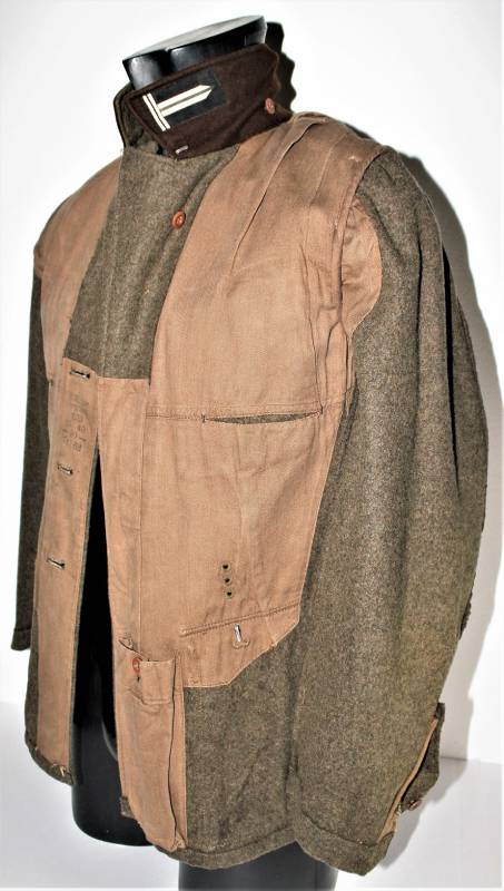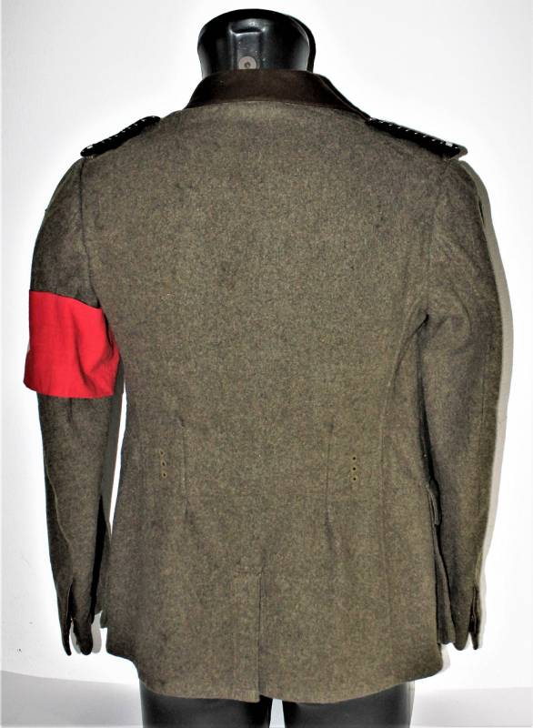 Giacca M36 da Sottufficiale della RAD in ottime condizioni e completa in ogni sua parte, non restaurata o riparata, nata in panno di lana marrone tipico della RAD, completa di tutta la sua mostreggiatura montata in epoca, il tutto solo con leggera patina del tempo, in alcuni punti sono presenti tracce di tarme ma non buchi, marcata internamente con nome del fabbricante, data 1939, numeri di taglia e marchi RAD.