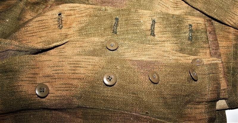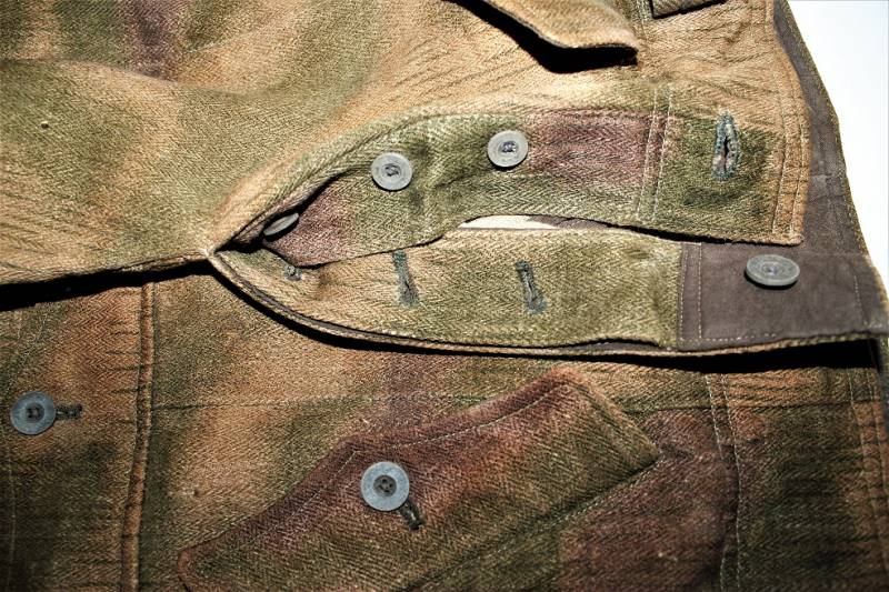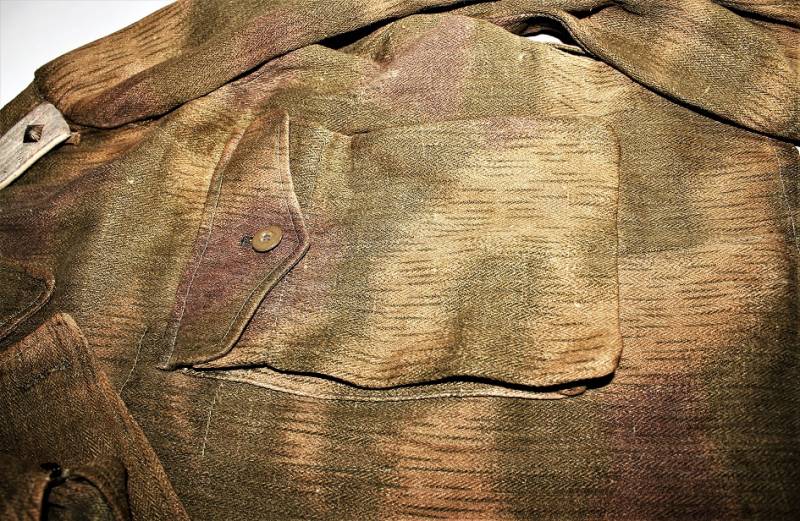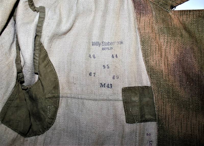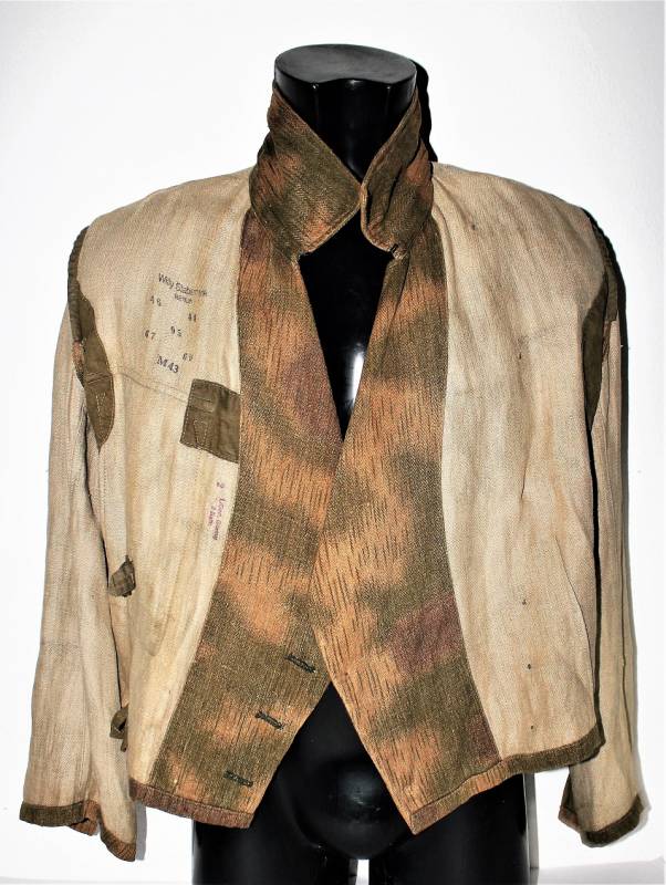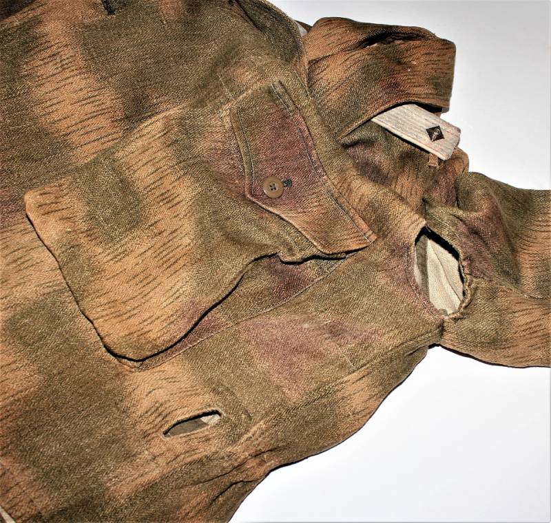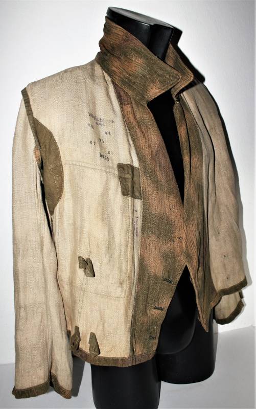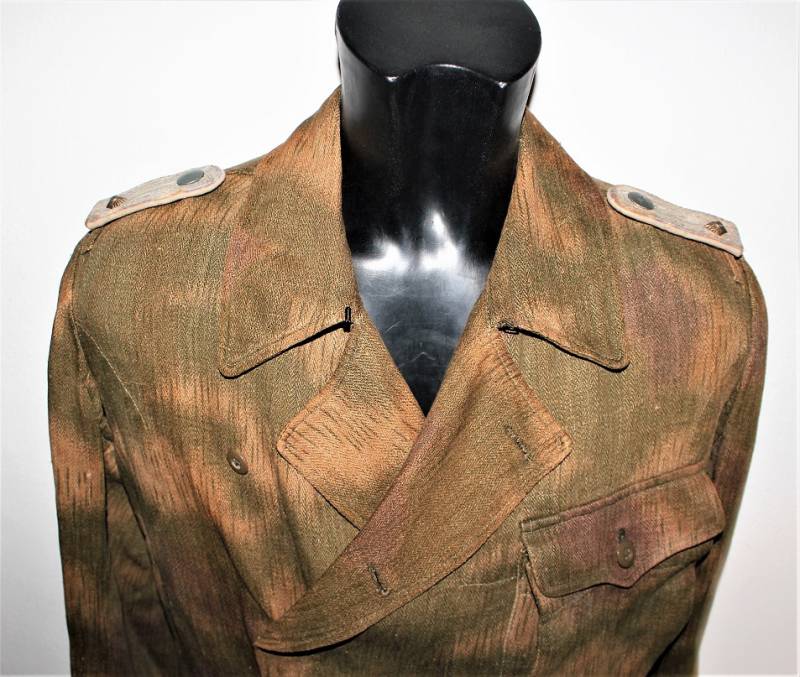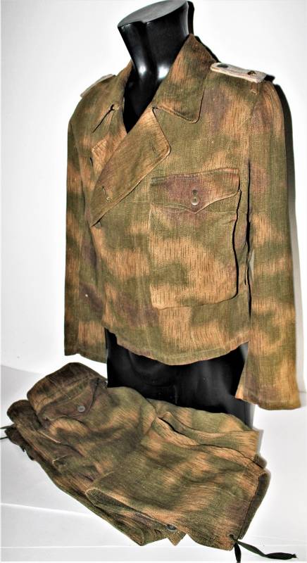 Stupendo e raro set completo di giacchino e pantaloni mimetici mod.44 in condizioni stupende, nato in stoffa mimetica drillich sfumata, completo di spalline da Ufficiale della Luftwaffe nel grado di Tenente, waffenfarbe bianco Reggimento Hermann Goering, non restaurato o riparato, senza buchi o strappi, cuciture perfette solo leggera patina del tempo e dellŽuso, il set giacca e pantaloni appartengono alla stessa persona e hanno lo stesso grado dŽuso.