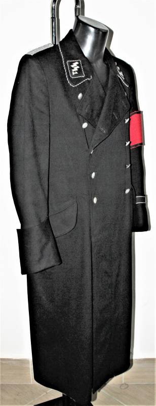 Stupendo e raro cappotto da Ufficiale Algemine SS-VT nato in elegante panno di lana pettinata nera, condizioni stupende quasi pari al nuovo, non restaurato o riparato, senza buchi o strappi e con tutte le cuciture perfette e completo in ogni sua parte.