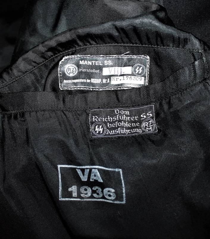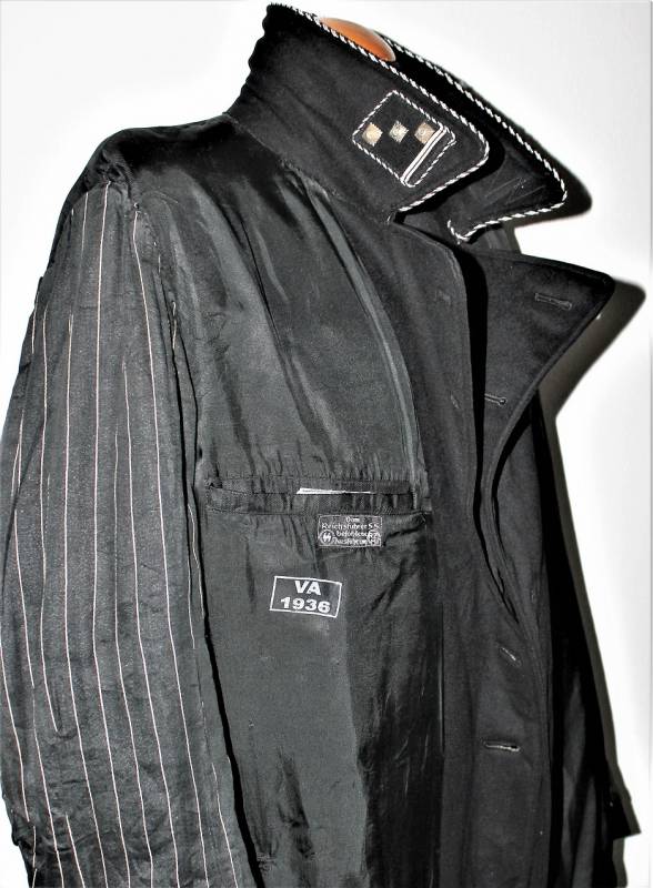 Il cappotto internamente è completo delle sue etichette in stoffa SS RZM.. ecc. e timbro d´accettazione con data VA 1936.