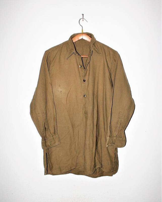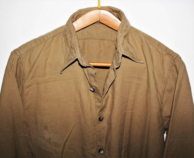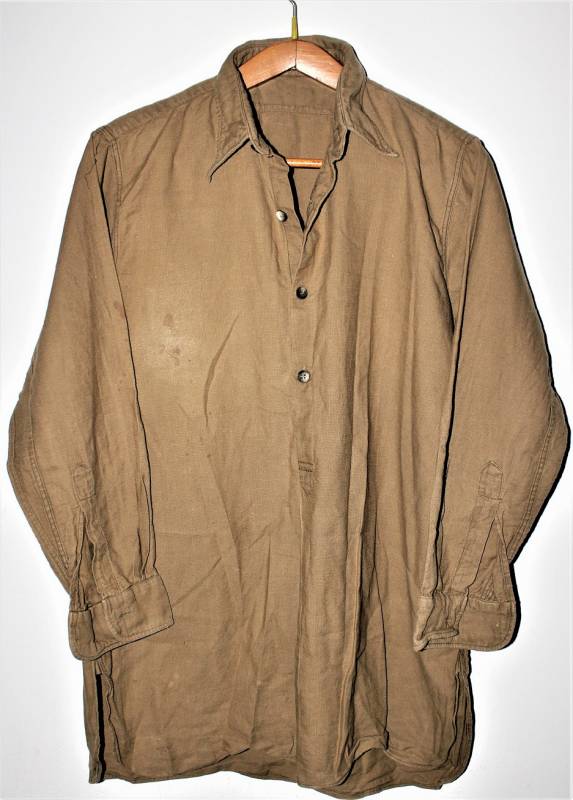 Camicia di servizio in cotone a maniche lunghe in dotazione a tutti i reparti WH-SS-LW in condizioni pari al nuovo, forse mai usata, marcata internamente sul colletto con fabbricante e taglia circa 50 (39).