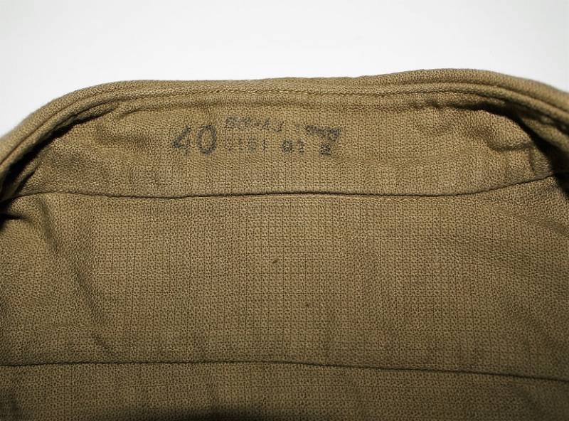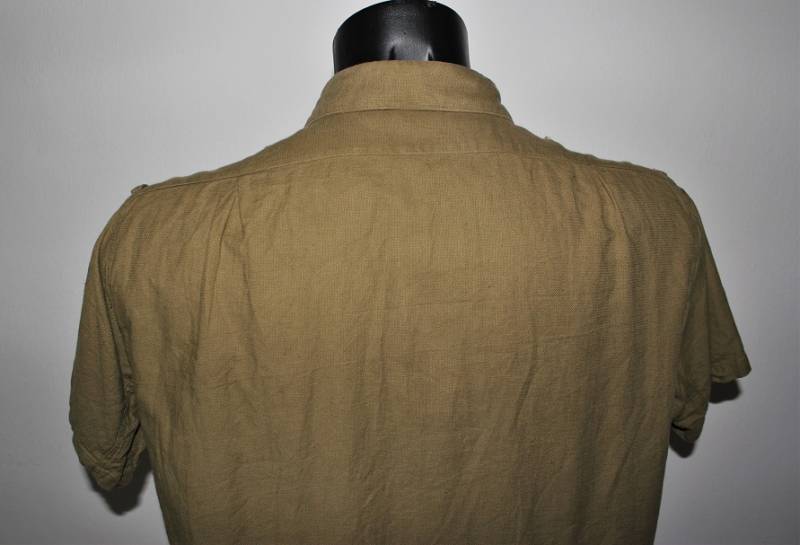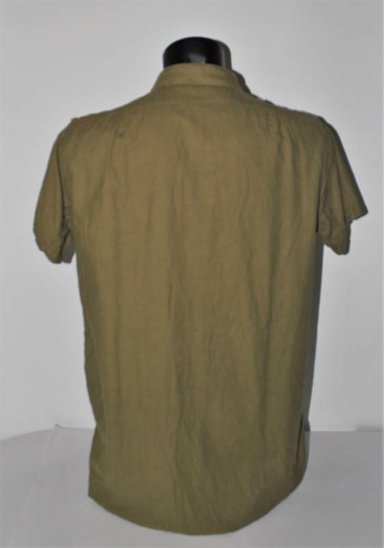 Camicia tropicale della Luftwaffe nata in cotone, modello a maniche corte, completa di aquila cucita a macchina in epoca, condizioni perfette, forse mai usata. Marcata con fabbricante e taglia circa 48-50 (40). Originale 100% WWII periodo.
