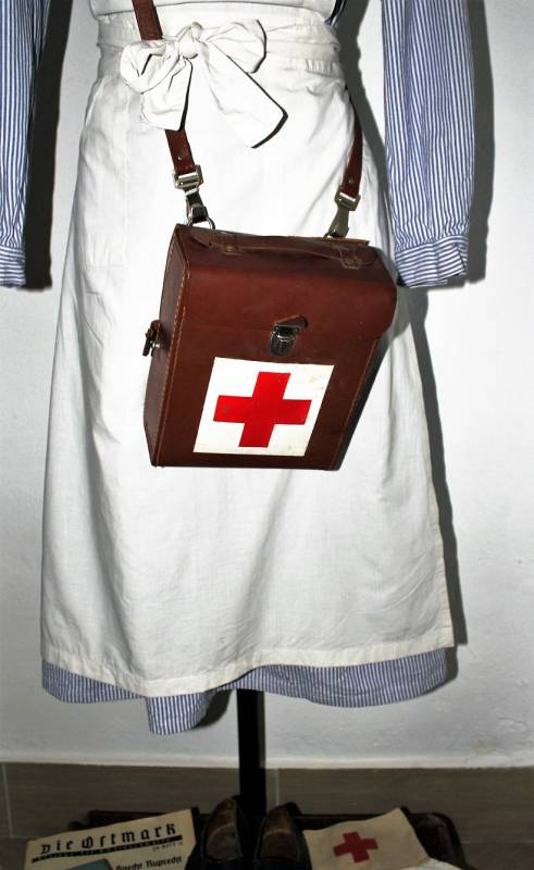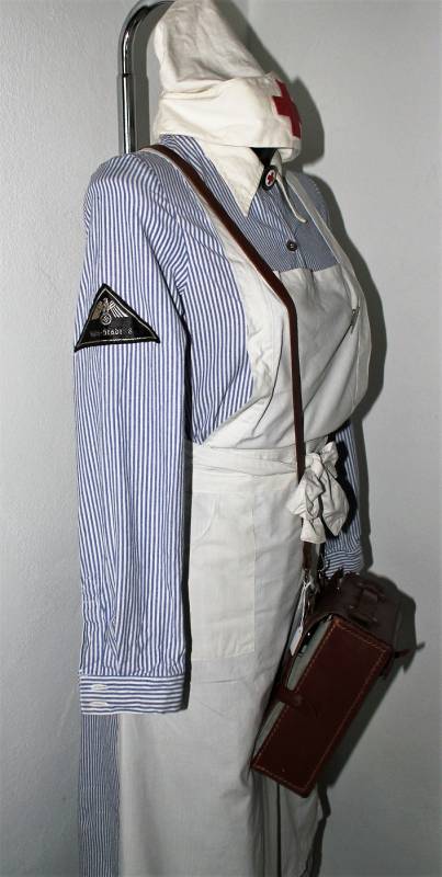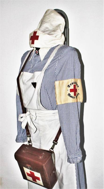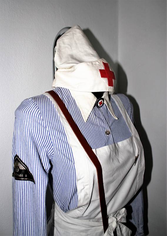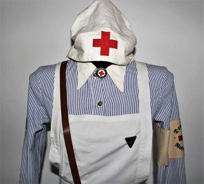 Set completo di uniforme femminile della DRK in condizioni stupende, il tutto quasi pari al nuovo, completo di tutti gli accessori come in foto, compresa la documentazione personale dellŽinfermiera, ritrovamento in famiglia, sono inclusi nel set anche i distintivi e la borsa in cuoio di primo intervento medico, completa di tutti gli accessori. Originale 100% WWII periodo.