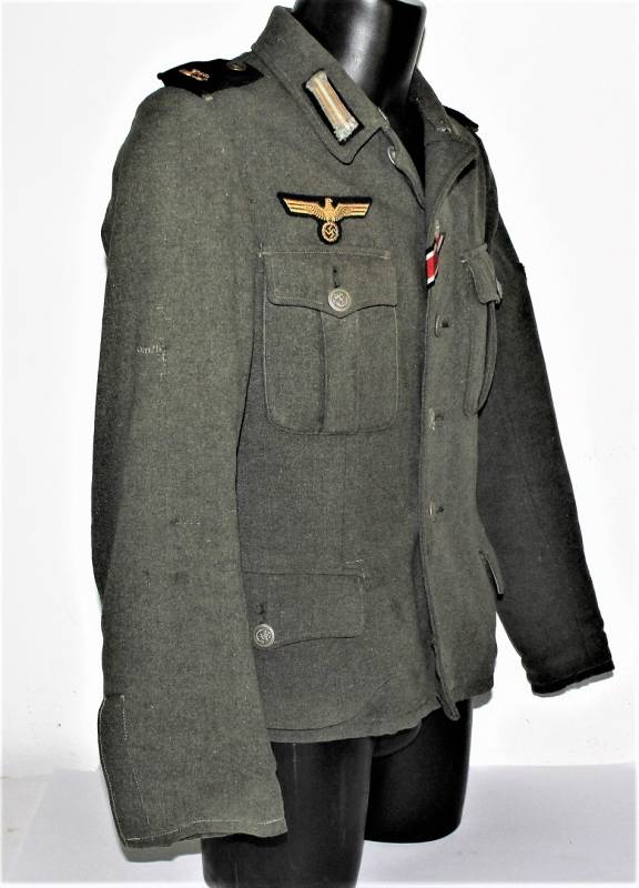 Giacca da truppa M40 KM Artiglieria Costiera, molto usata ma ancora in buone condizioni, qualche piccolo buchino, mostreggiata dŽepoca e completa in ogni sua parte, leggermente accorciata di circa 5cm in epoca. Marcata con codice Kriegsmarine e data 1941. Originale 100% WWII periodo.