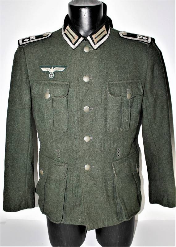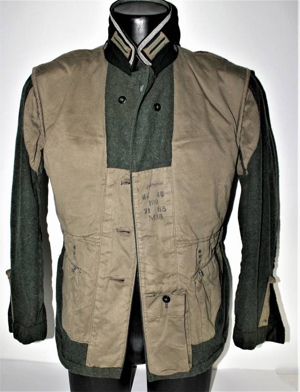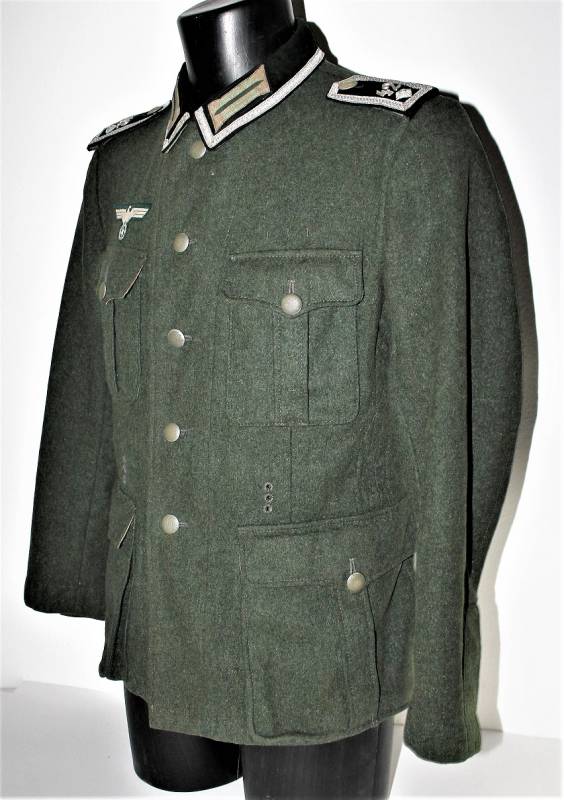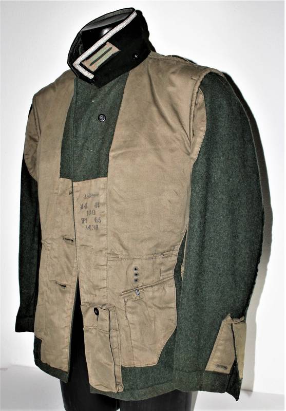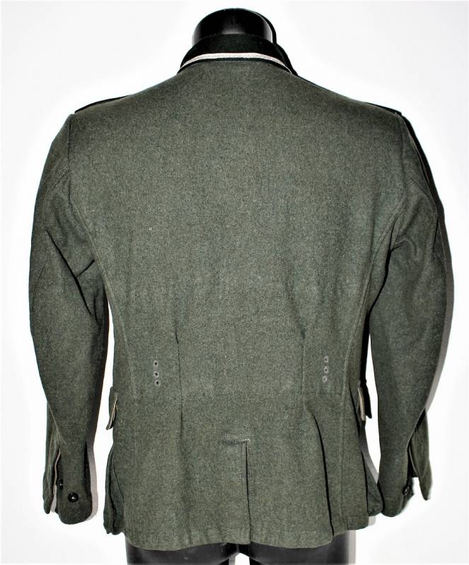 Stupenda giacca M36 da Sottufficiale della WH Gebirgsjäger in condizioni perfette quasi pari al nuovo, solo leggera patina dell´uso, completa in ogni sua parte, con tutta la mostreggiatura montata in epoca, non restaurata o riparata, solo piccola lesione sulla fodera della manica sinistra per usura, marcata internamente con numeri delle taglie e nome del fabbricante. Taglia circa 50. Originale 100% WWII periodo.