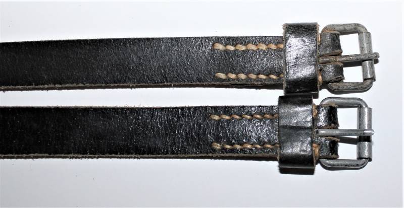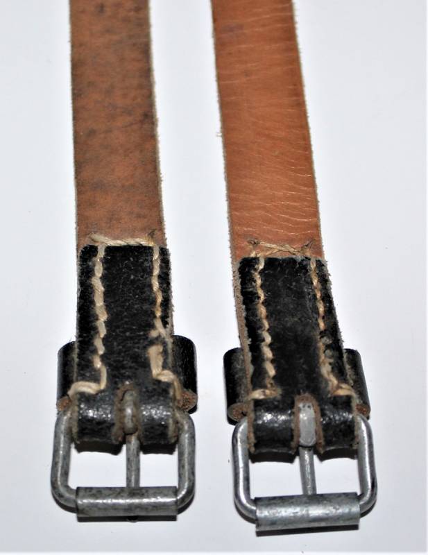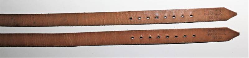 Coppia di cinghie per affardellamento in condizioni perfette, nuove di magazzino mai usate, entrambe con la stessa marcatura di fabbricante e data 1942. Originale 100% WWII periodo.